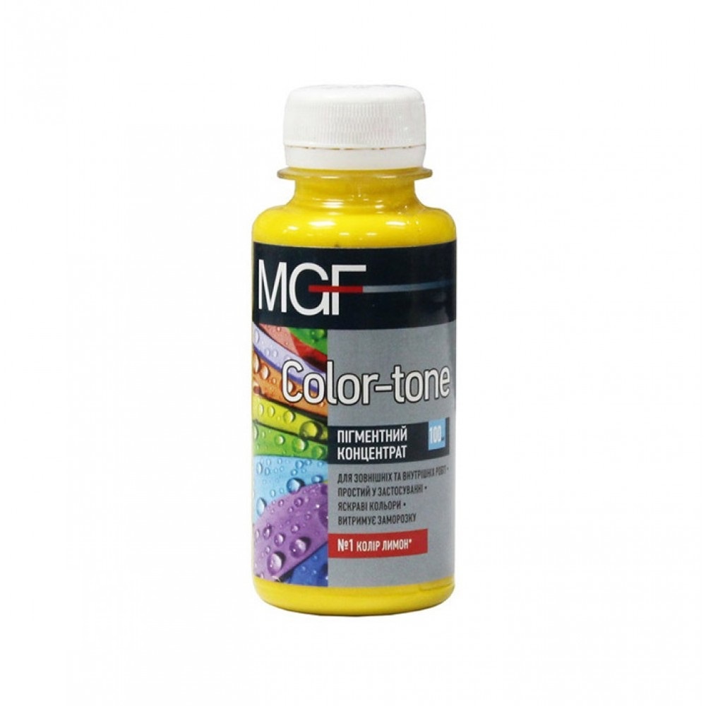 MGF Color-tone - концентрат, що використовується для отримання потрібного відтінку шляхом ручного тонування. Підходить для тонування водно-дисперсійних фарб, масляних, а також алкідних емалей, вапняних розчинів, сухих будівельних сумішей.