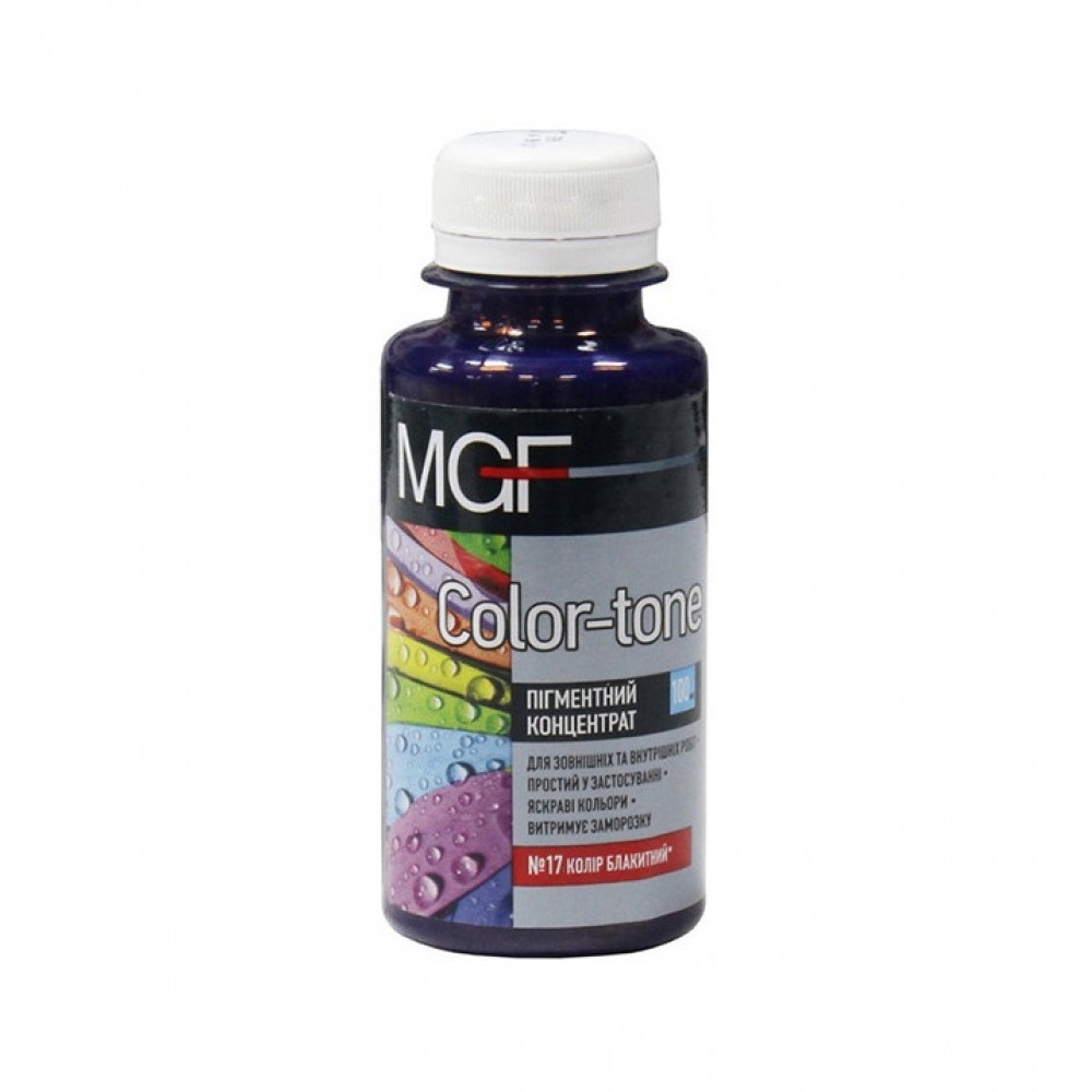 MGF Color-tone - концентрат, що використовується для отримання потрібного відтінку шляхом ручного тонування. Підходить для тонування водно-дисперсійних фарб, масляних, а також алкідних емалей, вапняних розчинів, сухих будівельних сумішей.