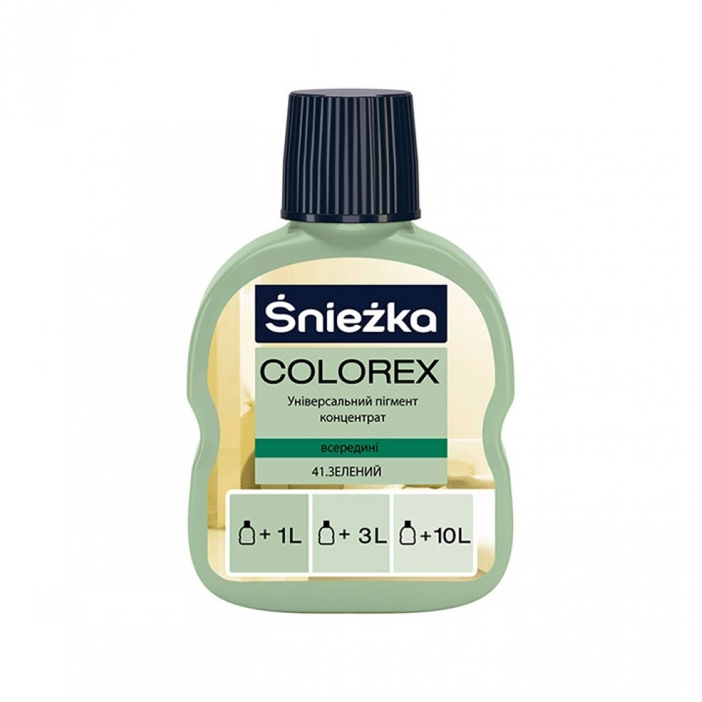 COLOREX представляє собою водну дисперсію пігментів з різними добавками. Концентрат використовується для отримання потрібного відтінку шляхом ручного тонування. Підходить для водно-дисперсійних фарб, а також фарб на основі нітроцелюлози, фталевих, масляних, клейових, хлоркаучукових і емульсійних розчинників.