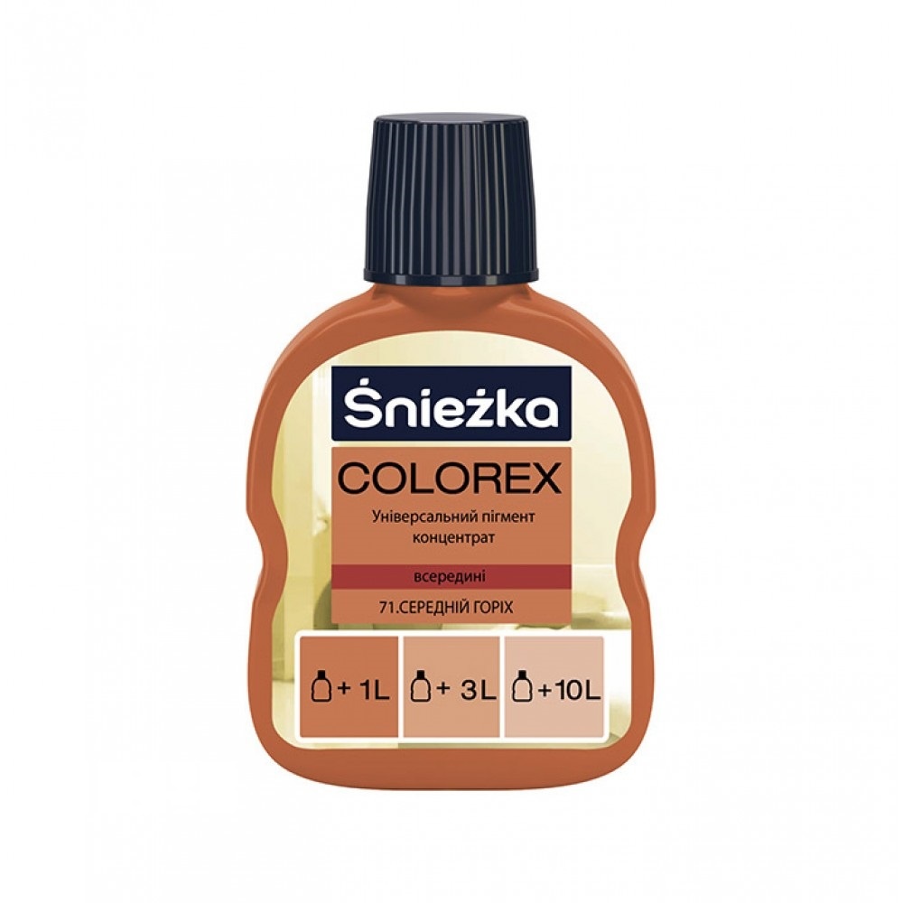 COLOREX представляє собою водну дисперсію пігментів з різними добавками. Концентрат використовується для отримання потрібного відтінку шляхом ручного тонування. Підходить для водно-дисперсійних фарб, а також фарб на основі нітроцелюлози, фталевих, масляних, клейових, хлоркаучукових і емульсійних розчинників.