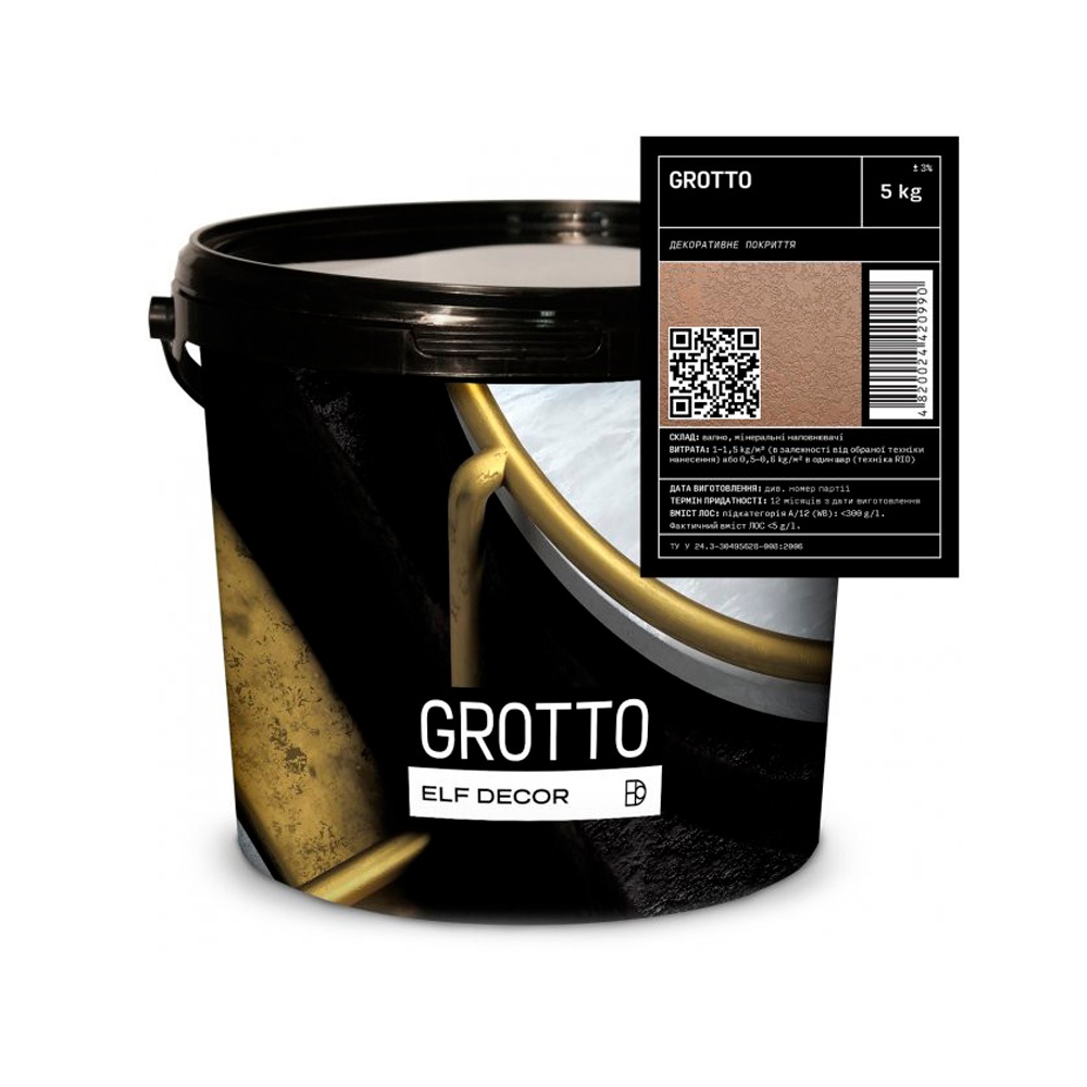 Elf Decor Grotto – декоративне покриття, створене на основі натурального вапна. Сьогодні широко використовується для декорування інтер'єрів. Матеріал має високу паропроникність та протигрибкові властивості. Чудово поводить себе у вологих приміщеннях. Grotto – це унікальна можливість створення власного неповторного інтер'єру з різними декоративними рішеннями. Використовуючи різні техніки нанесення покриття, завдяки його особливому складу, можна отримати різноманітні фактури.