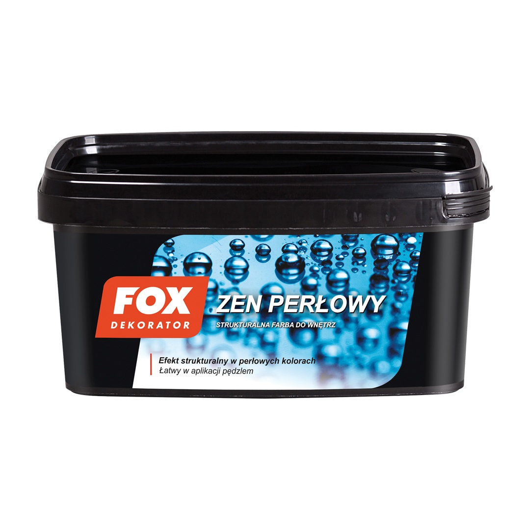 Fox Dekorator Zen Perlowy – проста у використанні декоративна фарба, яка надає пофарбованій поверхні ефект перламутрової глибини з делікатним піском. Додає будь-якому інтер’єру благородних рис. Характеризується здатністю маскувати недоліки пофарбованої поверхні.