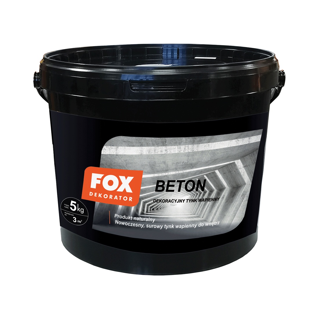 Fox Dekorator BETON – декоративна вапняна штукатурка з ефектом бетону. Модна, художня штукатурка, яка є ідеальною прикрасою сучасних житлових і громадських інтер'єрів. Прекрасно гармонує з металом, склом і необробленим деревом. Його поверхня нагадує натуральний, «брутальний» бетон.
