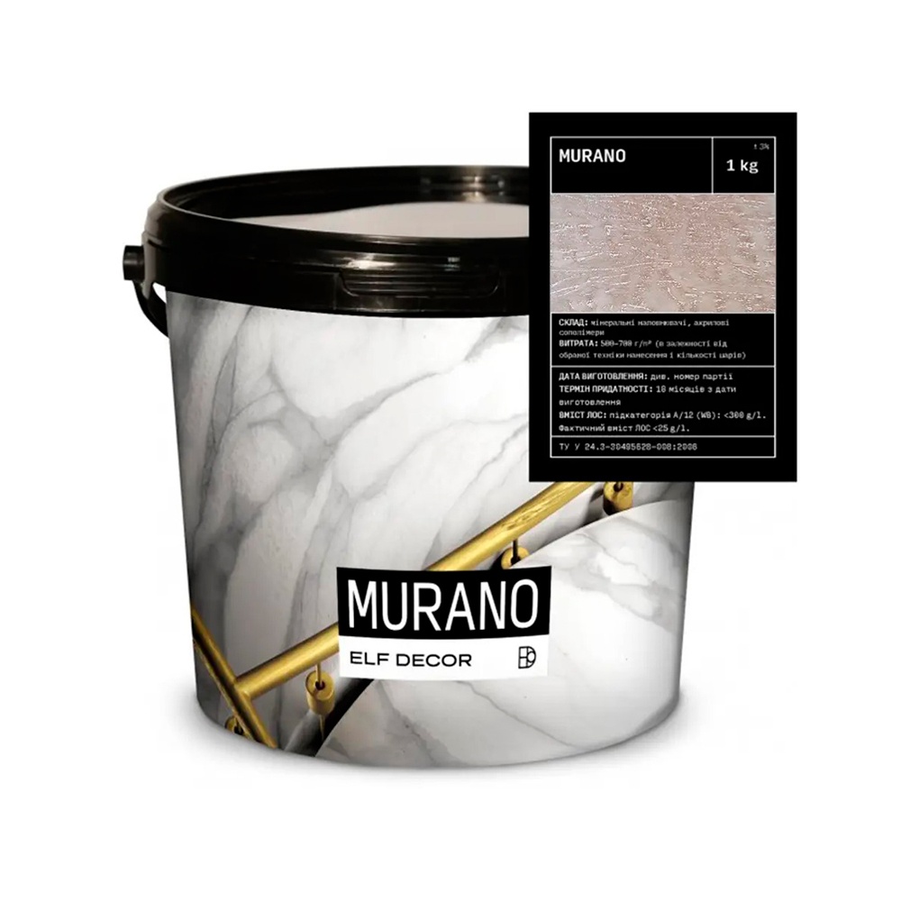 Декоративне покриття для внутрішніх робіт Murano - це венеціанська штукатурка, створена з використанням натуральних мінеральних наповнювачів та акрилових складових. Цей розкішний матеріал створює ефект полірованого мармуру. Спеціальна формула дозволяє отримати насичені тони при економній витраті барвників.