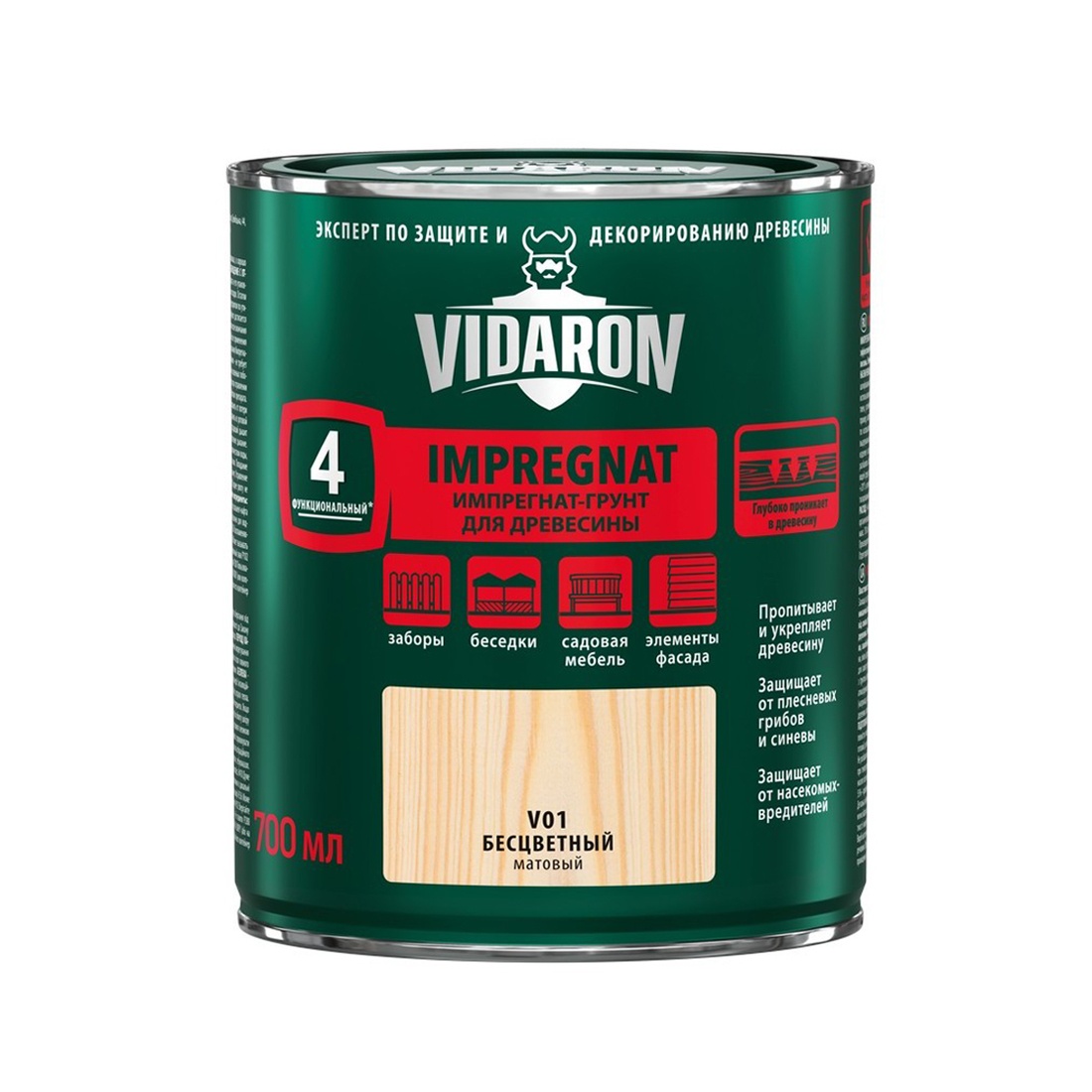 Імпрегнат-ґрунт Vidaron – це глибоко проникаючий засіб, який забезпечує повний біологічний захист деревини – ефективний захист від синяви, грибків, що викликають розкладання деревини, та комах, технічних шкідників деревини. Рекомендується як ґрунтувальний шар під захисно-декоративні імпрегнати, лаки, лакобейци та емалі.