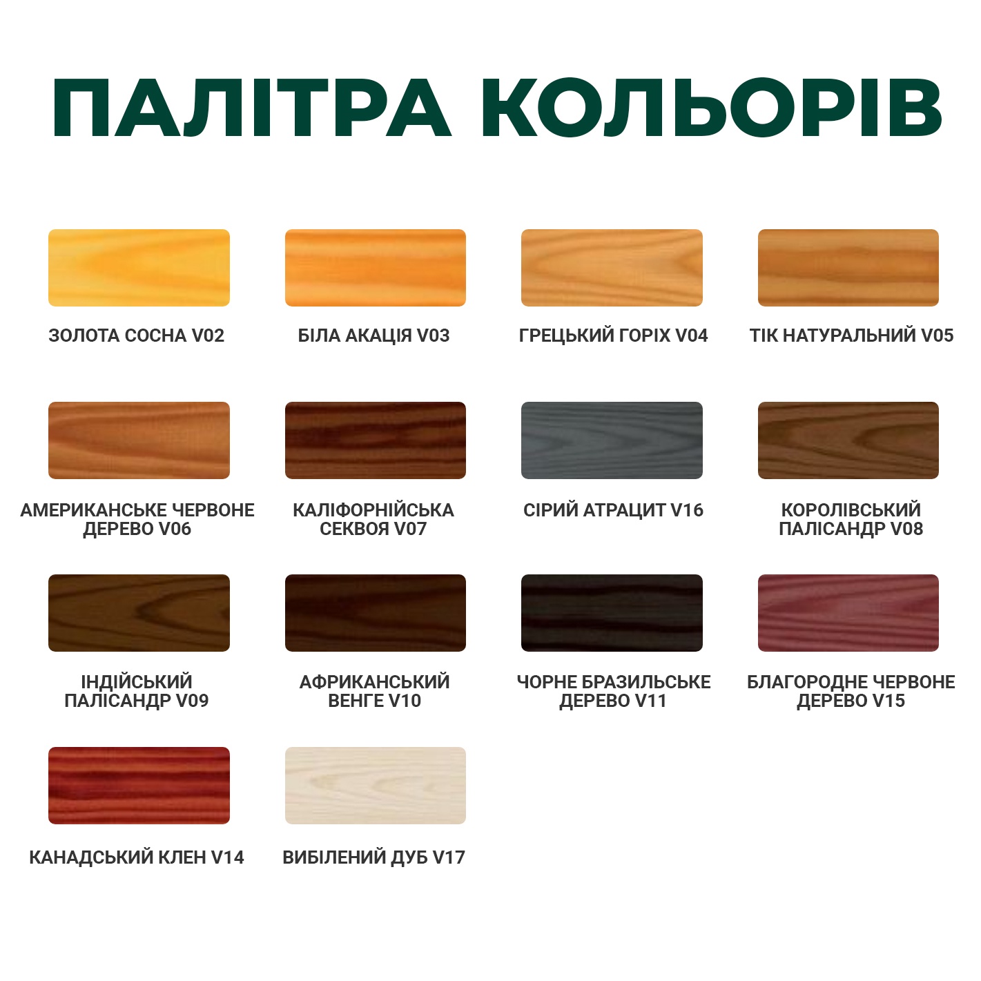 Призначений для захисно-декоративного нанесення на заготовки, раніше не захищені вироби з деревини та деревопохідні матеріали з метою їх захисту від шкідливого впливу біологічних факторів, руйнівної дії вологи й атмосферних факторів. Застосовується для фарбування дерев’яних фасадів, садових меблів, альтанок та інших поверхонь з деревини, як шліфованих, так і нешліфованих.