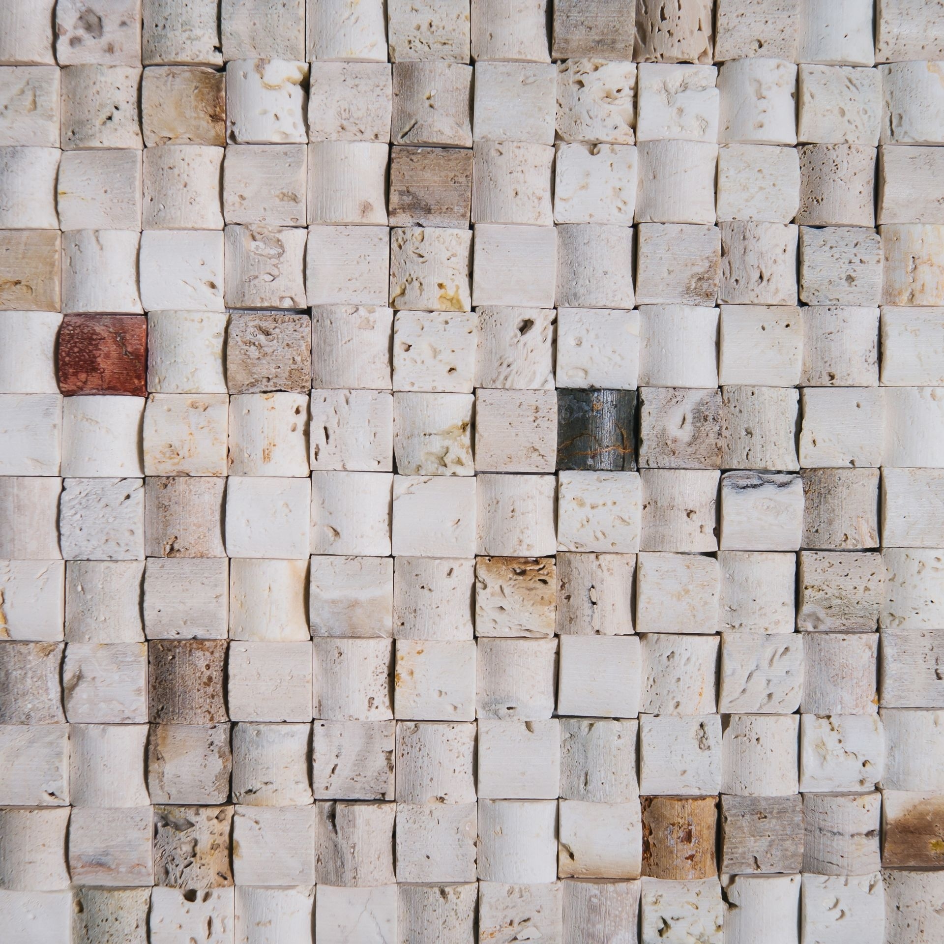 Маленькі плиточки натурального травертину Арабеска м'якого кремового кольору із домішками жовтих, коричневих, карамельних та синіх відтінків – ідеальний варіант для оздоблення робочої зони на кухні чи у передпокої. Ніжне поєднання кольору і фактури природного каменю підкреслять ексклюзивність інтер'єру у класичному та сучасному стилях.