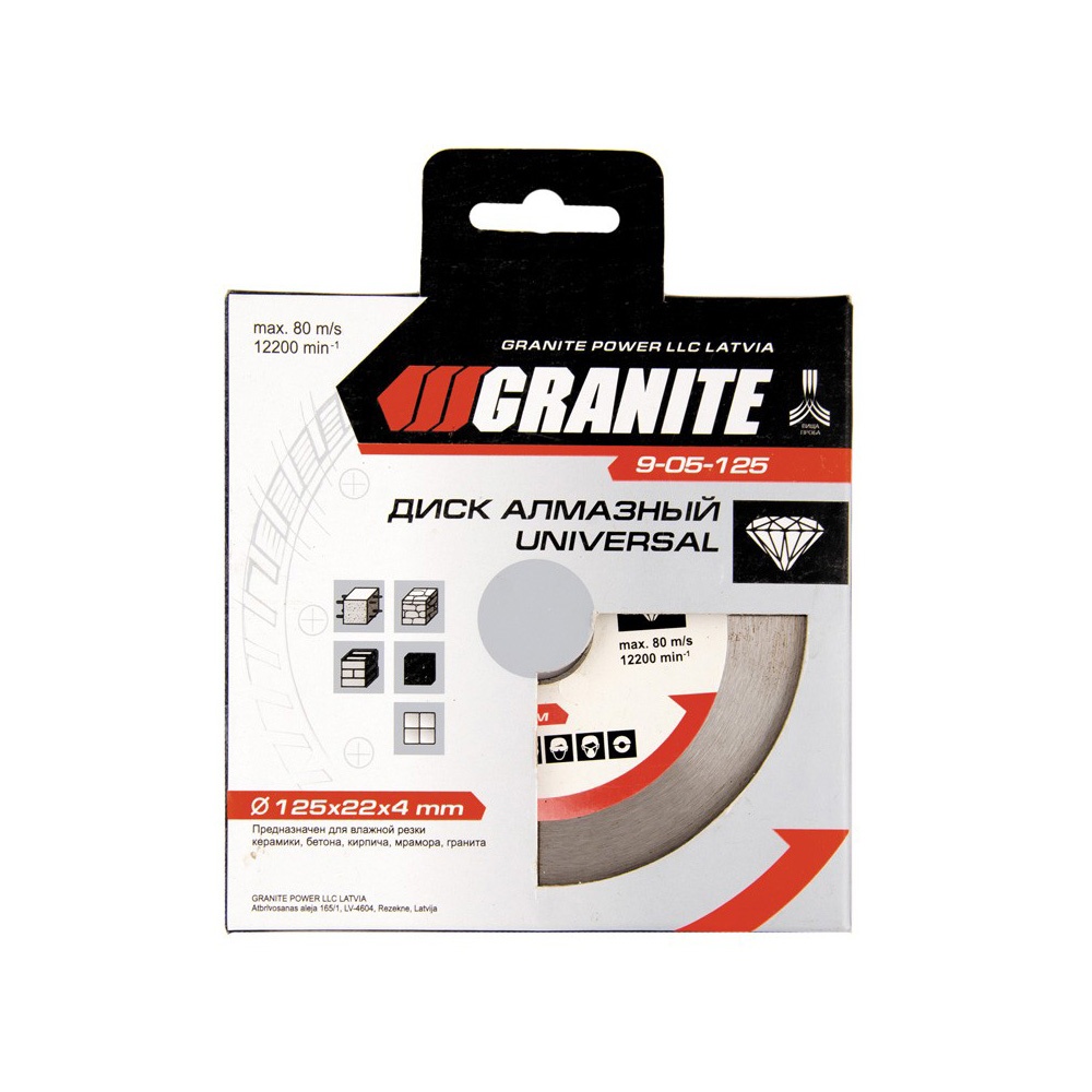Алмазний диск "Granite" призначений для сухого різання будівельних матеріалів, таких як бетон, цегла, камінь, граніт, вогнетривкий матеріал. Використовується на УШМ, ручному електричному плиткорізі, штроборізі, тощо. Складається з алмазних сегментів і сталевого корпусу. Має унікальну функцію самозаточування