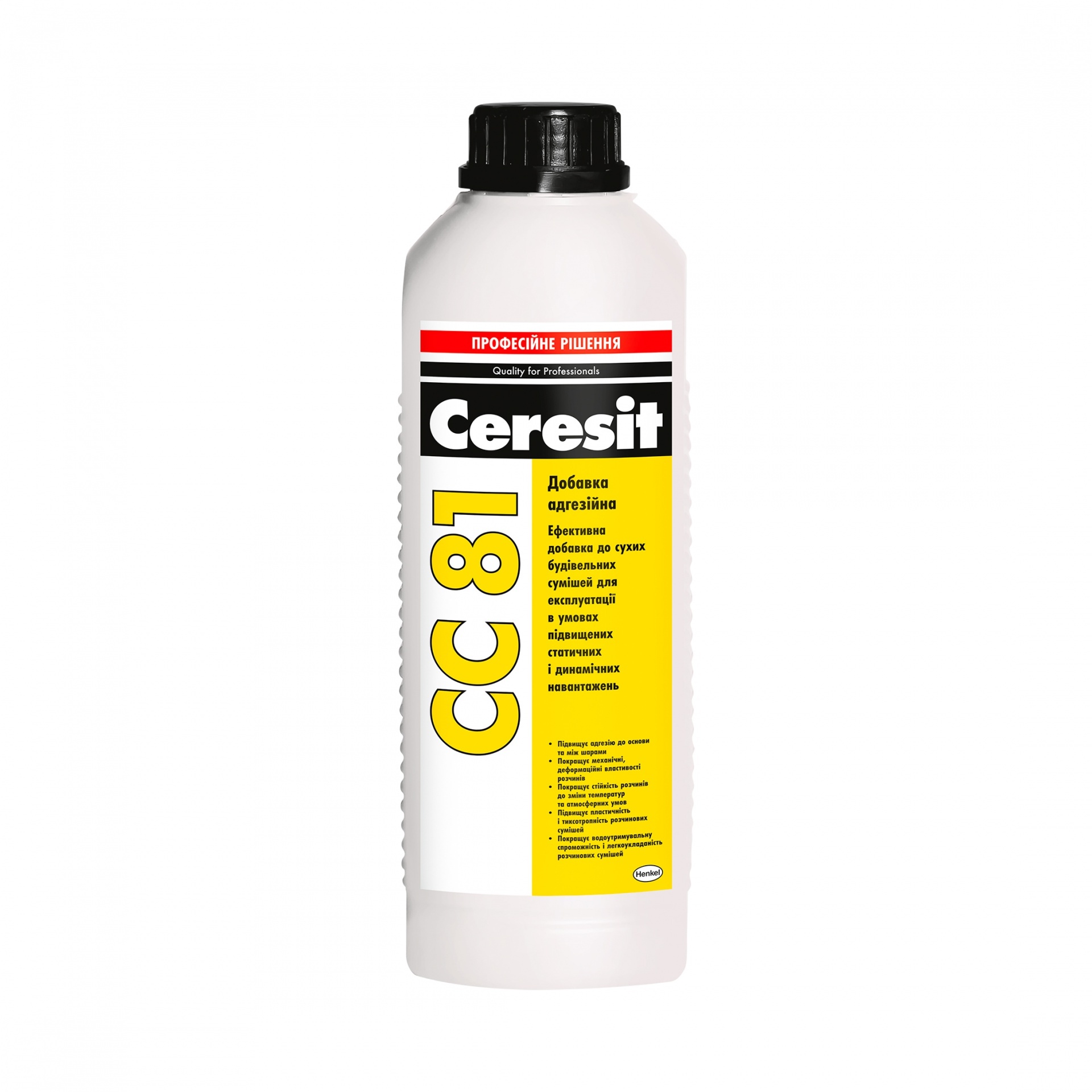Добавку адгезійну Ceresit CC 81 рекомендується додавати до відповідних за призначенням сухих будівельних сумішей на цементному або гіпсовому в’яжучому для формування проміжних адгезійних (ґрунтувальних) шарів перед нанесенням основного функціонального шару методом «мокрий по мокрому» або для безпосереднього формування покращеного основного функціонального шару, з підвищеною адгезією та фізико-механічними характеристиками (міцність, тріщиностійкість, деформативність, хімічна стійкість). Модифікація розчинової суміші суттєво покращує її робочі властивості: пластичність, тиксотропність, водоутримання, легкоукладаність, тривалий час використання (придатність).