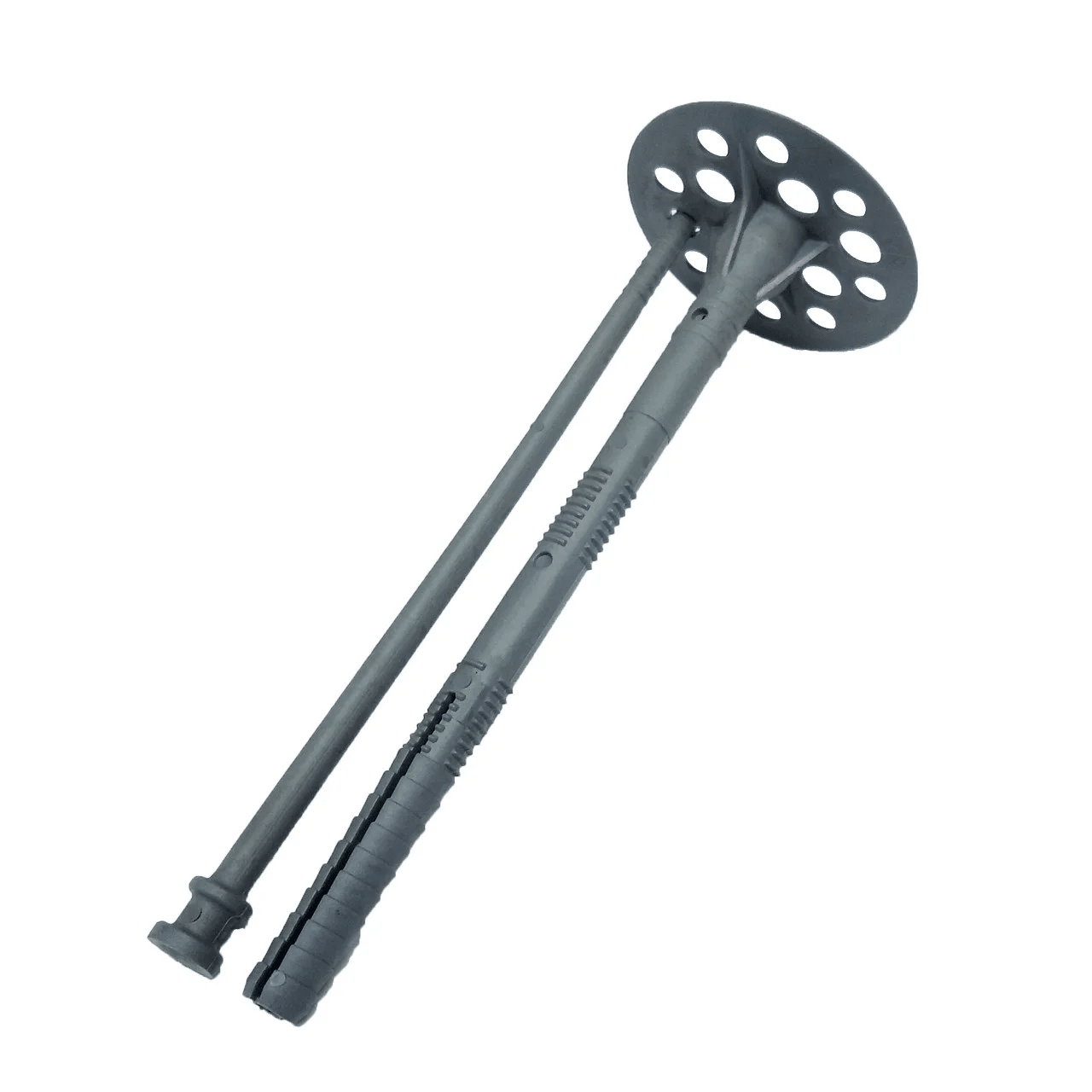 Розпірний дюбель для кріплення теплоізоляції з поліамідним цвяхом. Призначений для закріплення легких теплоізоляційних матеріалів у формі плит, зокрема пінополістиролу, і важких мінераловатних і скловатних теплоізоляційних плит безпосередньо до стіни перед нанесенням армуючого шару і штукатурки.