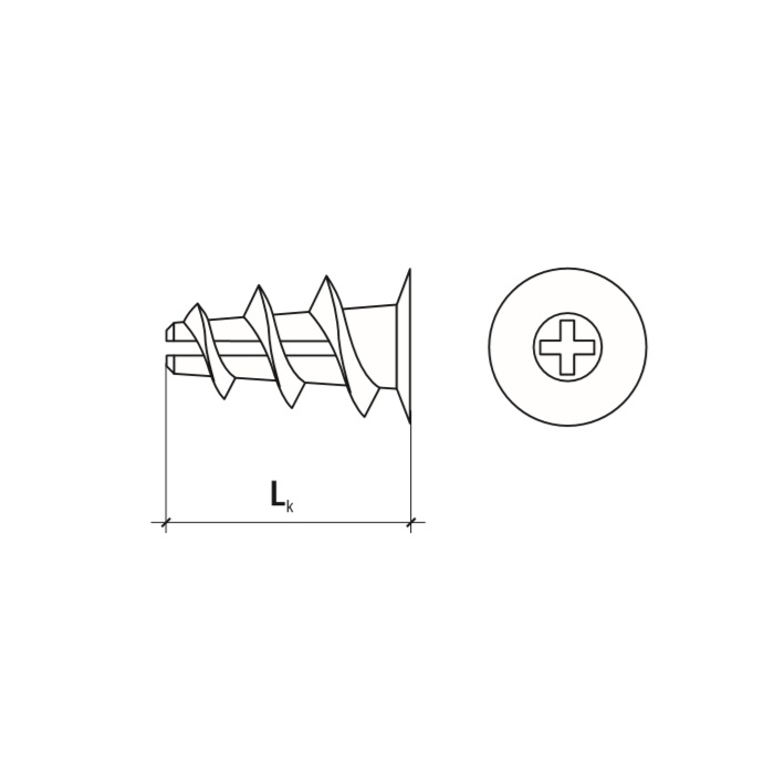 Це виключно зручна деталь, оскільки дюбель просто угвинчується і міцно тримається в конструкції. Його можна монтувати за допомогою звичайної біти (насадки для шуруповерта). Дюбель для гіпсокартону DRIVA також може використовуватися і для більш міцних плит з гипсоволокна (ГВЛ).