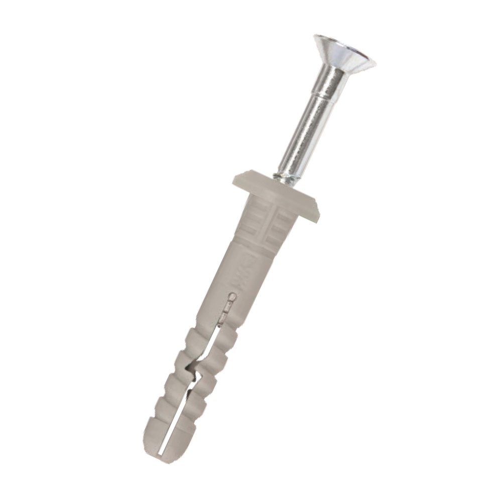 Універсальний дюбель, призначений для швидкого наскрізного монтажу легких, статично навантажених елементів (дерев`яних, гіпсокартонних конструкцій, коробів і ін) в повнотілих основах, при монтажу яких потрібна велика поверхня притискання.