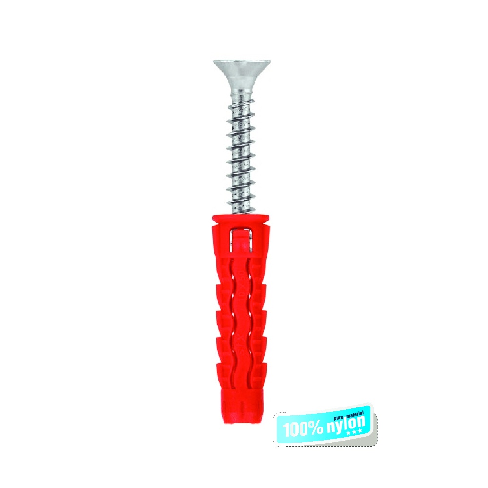 Внутрішня конструкція дюбеля усуває проблему помилкового вгвинчування шурупа в дюбель, направляючи його в правильний отвір. Збільшений діаметр манжета запобігає занадто глибокому розміщенню дюбеля, а зменшений діаметр на початку полегшує його установку в отворі.