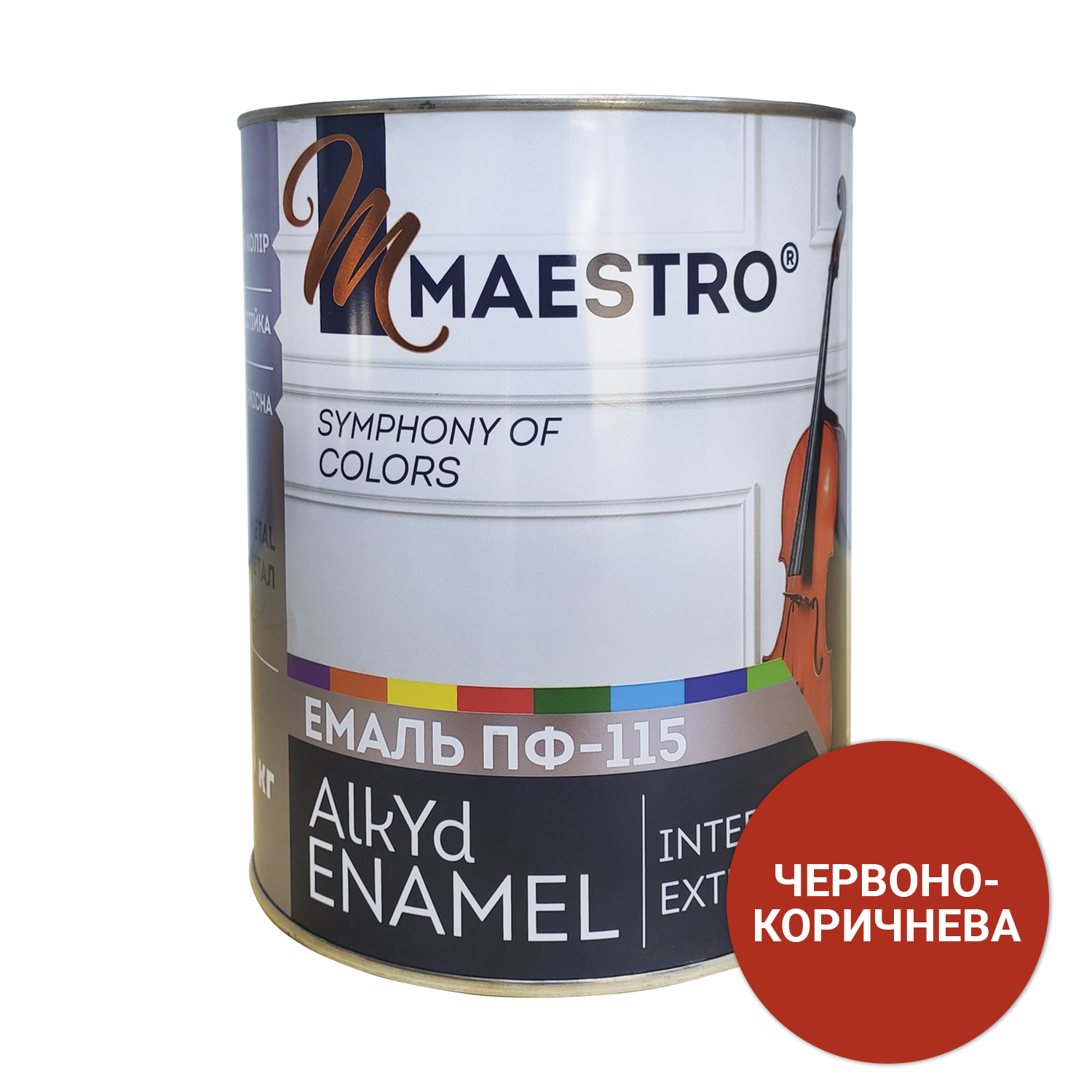 Maestro ПФ-115 – це алкідна емаль, яка добре зарекомендувала себе для фарбування металевих і дерев'яних поверхонь, експлуатованих в атмосферних умовах зовні і всередині приміщень. Матеріал утворює покриття з високими декоративними і захисними властивостями, стійке до перепаду температур від -40°С до +60°С.