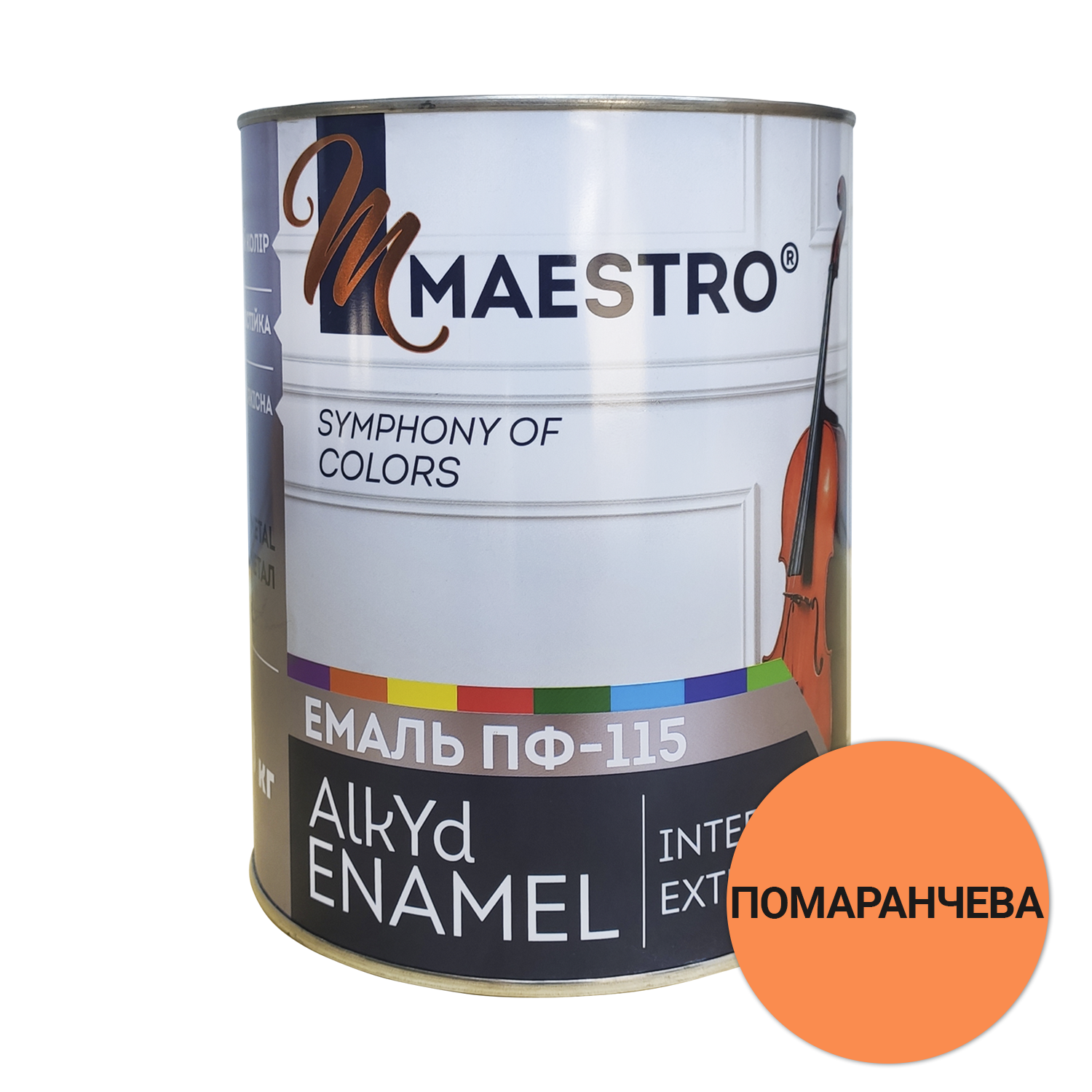 Maestro ПФ-115 – це алкідна емаль, яка добре зарекомендувала себе для фарбування металевих і дерев'яних поверхонь, експлуатованих в атмосферних умовах зовні і всередині приміщень. Матеріал утворює покриття з високими декоративними і захисними властивостями, стійке до перепаду температур від -40°С до +60°С.