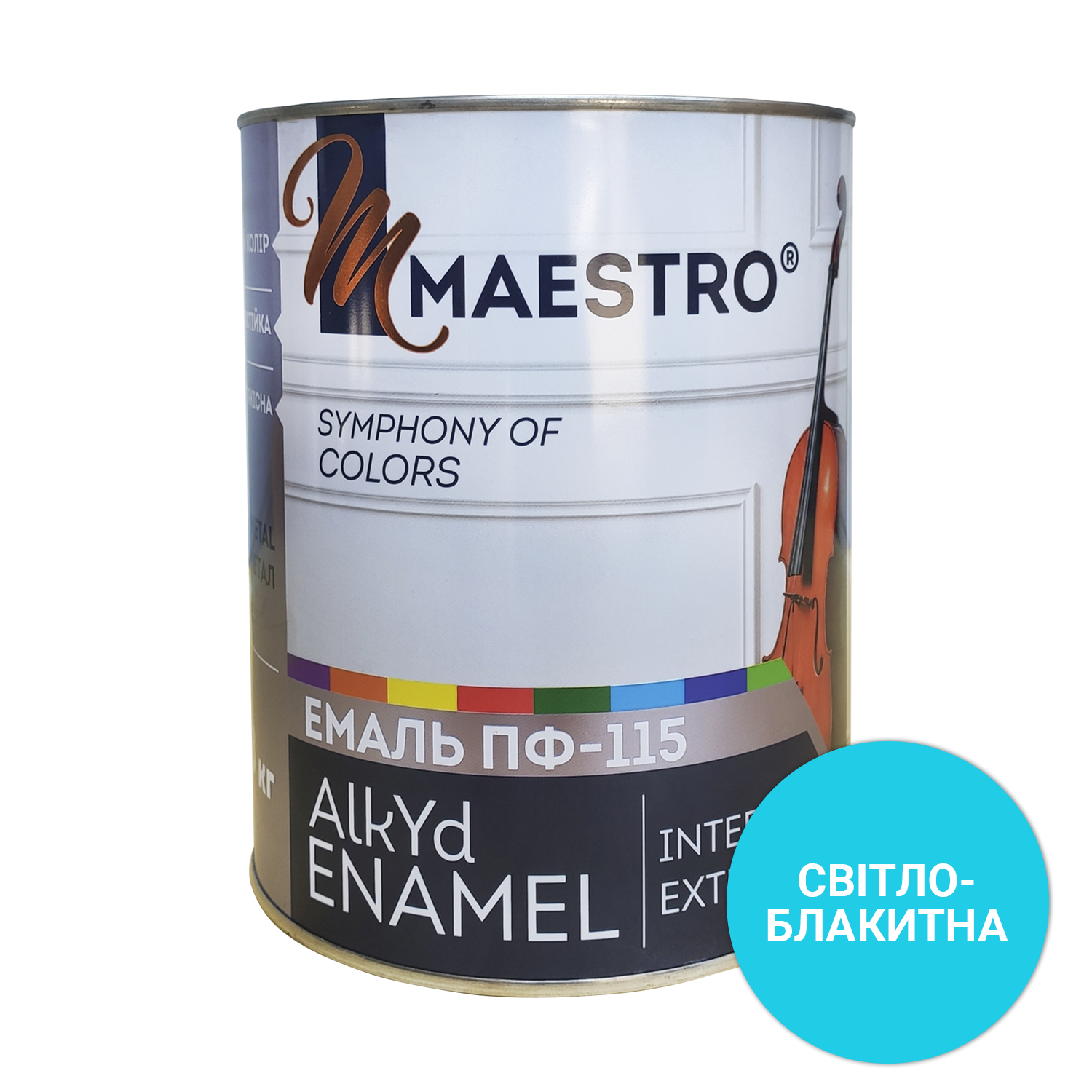 Maestro ПФ-115 – це алкідна емаль, яка добре зарекомендувала себе для фарбування металевих і дерев'яних поверхонь, експлуатованих в атмосферних умовах зовні і всередині приміщень. Матеріал утворює покриття з високими декоративними і захисними властивостями, стійке до перепаду температур від -40°С до +60°С.