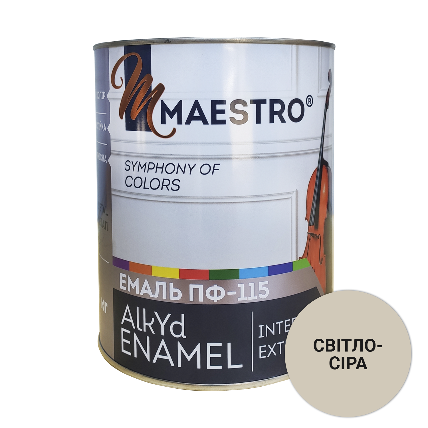 Maestro ПФ-115 – це алкідна емаль, яка добре зарекомендувала себе для фарбування металевих і дерев'яних поверхонь, експлуатованих в атмосферних умовах зовні і всередині приміщень. Матеріал утворює покриття з високими декоративними і захисними властивостями, стійке до перепаду температур від -40°С до +60°С.