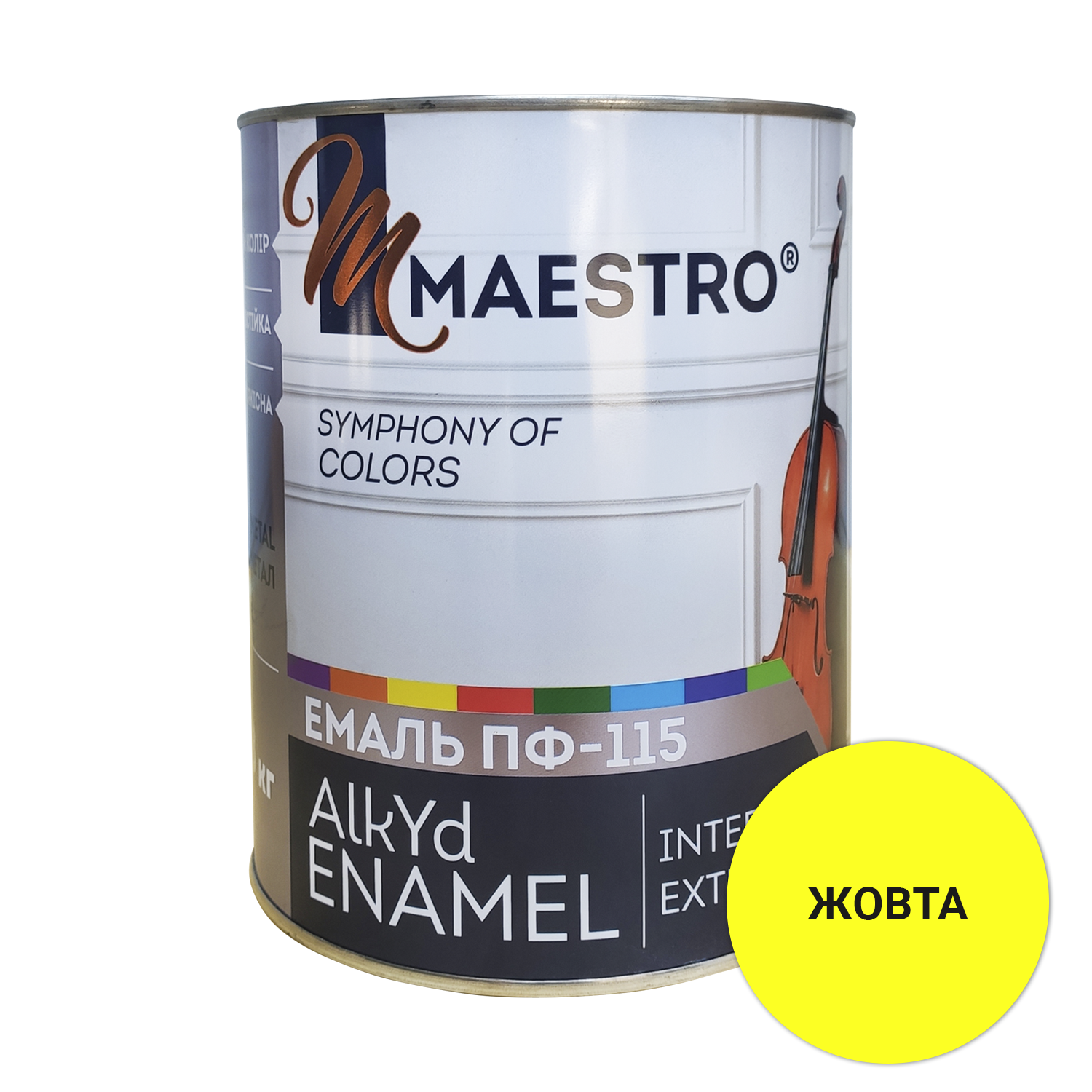 Maestro ПФ-115 – це алкідна емаль, яка добре зарекомендувала себе для фарбування металевих і дерев'яних поверхонь, експлуатованих в атмосферних умовах зовні і всередині приміщень. Матеріал утворює покриття з високими декоративними і захисними властивостями, стійке до перепаду температур від -40°С до +60°С.