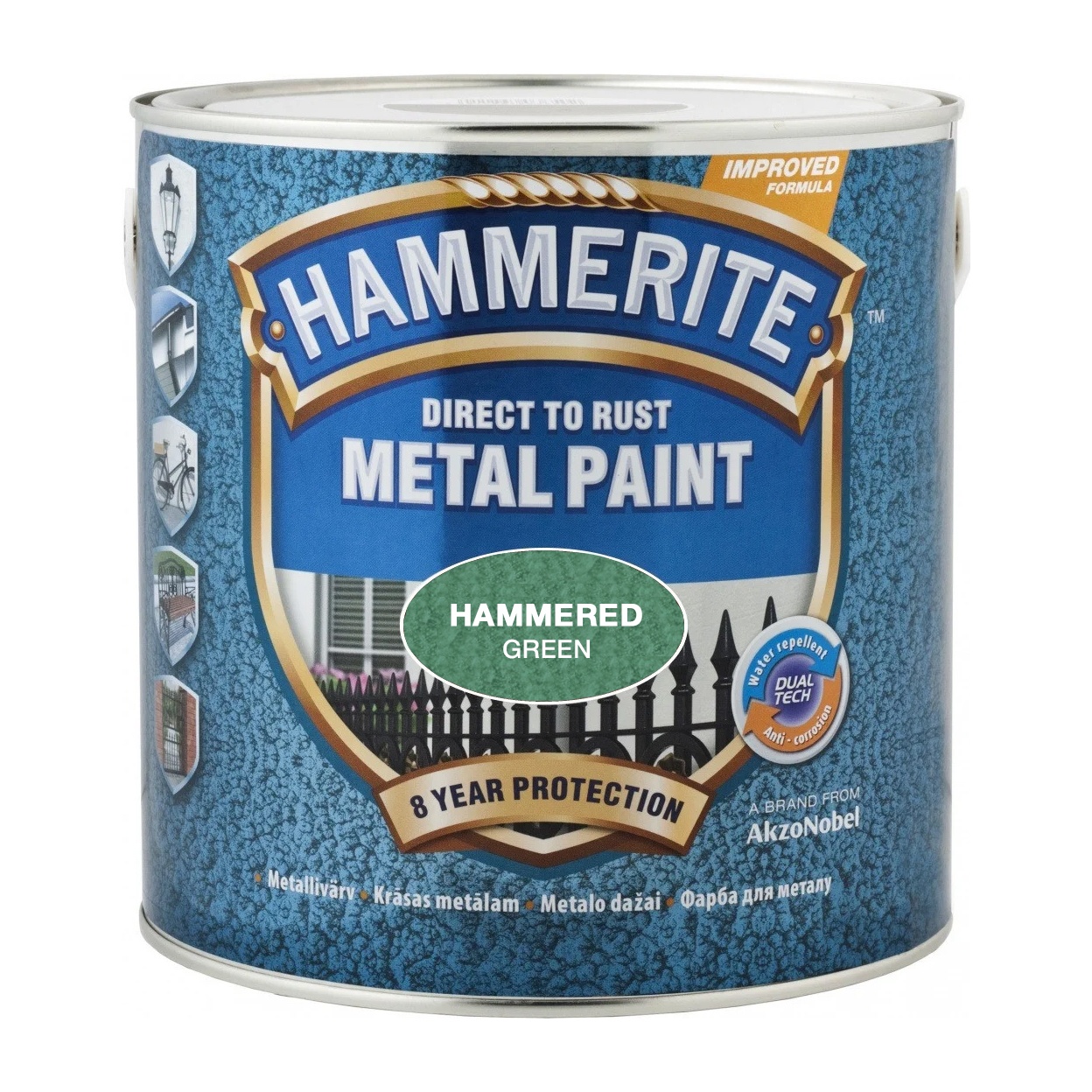 Фарба Hammerite – це захисна фарба по металу, що забезпечує гладку високоглянсову обробку поверхні та забезпечує тривалу стійкість до корозії, ударів і подряпин. Призначена для тривалої захисту та оздоблення різних металевих поверхонь, наприклад - несучих сталевих конструкцій, металевих стовпів, огорож, дверей, воріт, водостічних труб і ринв, металевих садових меблів, паркового інвентарю та обладнання для дитячих ігрових майданчиків, металевих ємностей, тощо. Підходить для використання, як при внутрішніх, так і при зовнішніх роботах.