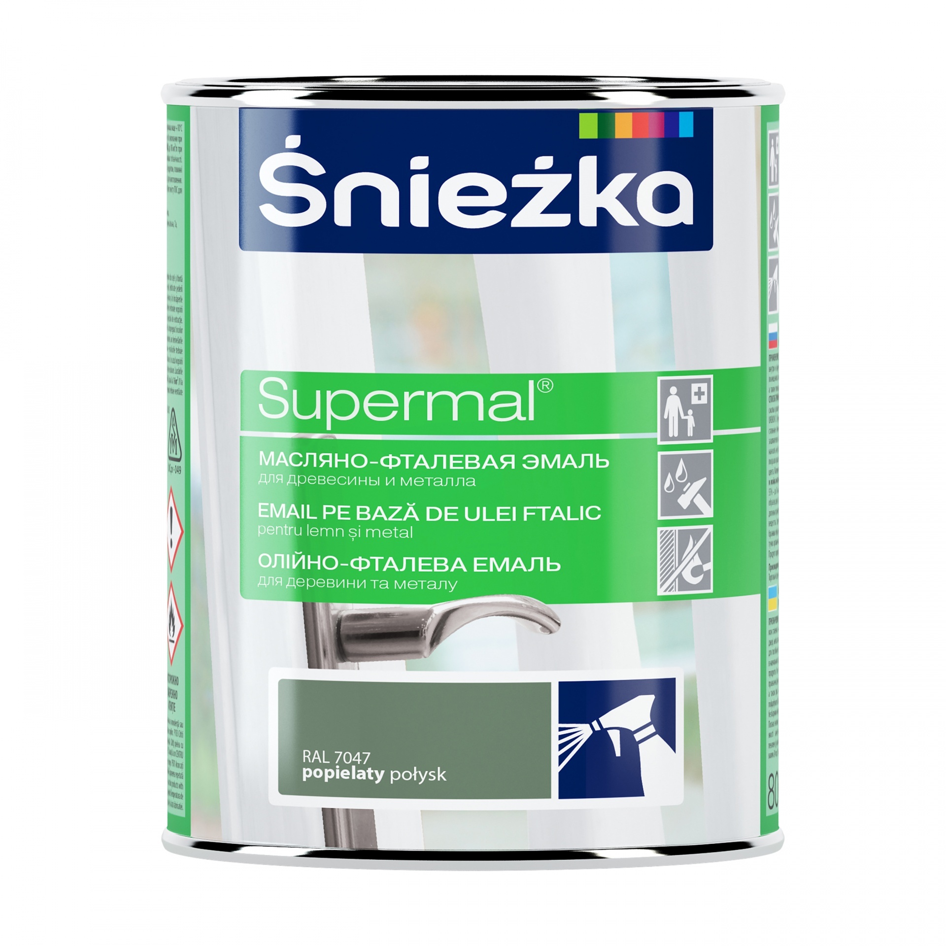Емаль Sniezka Supermal - це олійно-фталева емаль, що застосовується для декоративного й захисного фарбування дерев’яних і деревопохідних поверхонь, штукатурок і металу, які експлуатують усередині й назовні приміщень. Емаль рекомендована для використання в житлових помешканнях, закладах охорони здоров’я, призначених для постійного перебування пацієнтів, к шкільних класах, а також у приміщеннях для зберігання продуктів харчування (без безпосереднього контакту з продуктами).