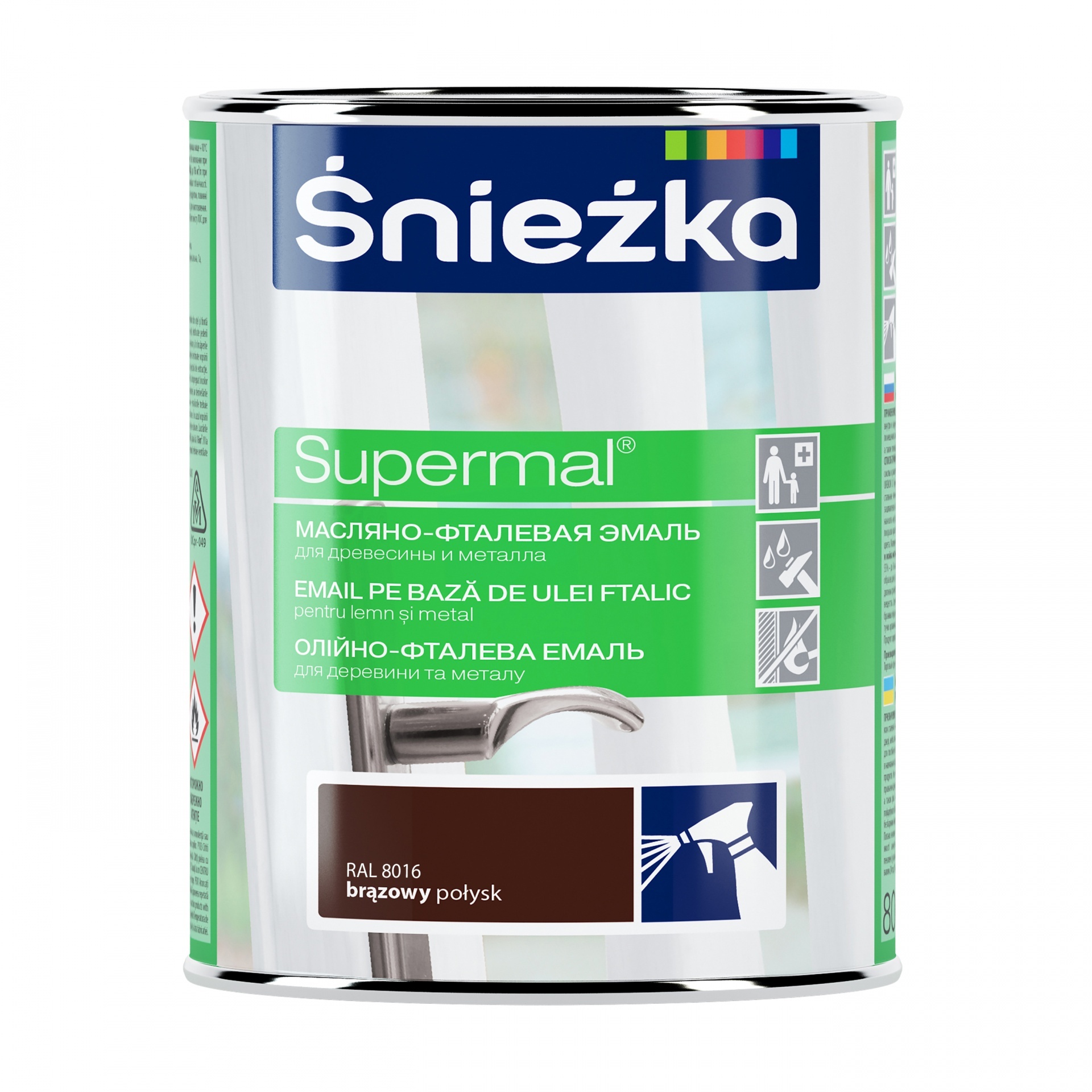 Емаль Sniezka Supermal - це олійно-фталева емаль, що застосовується для декоративного й захисного фарбування дерев’яних і деревопохідних поверхонь, штукатурок і металу, які експлуатують усередині й назовні приміщень. Емаль рекомендована для використання в житлових помешканнях, закладах охорони здоров’я, призначених для постійного перебування пацієнтів, к шкільних класах, а також у приміщеннях для зберігання продуктів харчування (без безпосереднього контакту з продуктами).