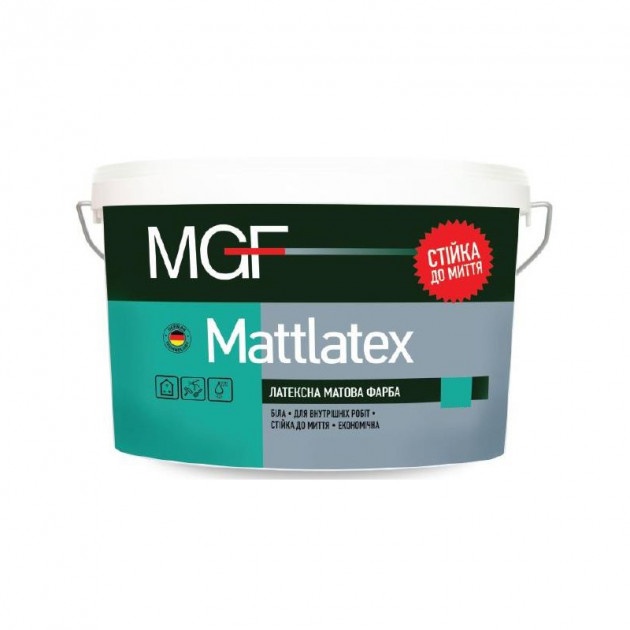 MGF Mattlatex M100 – це латексна матова, стійка до стирання фарба для стін і стель. Утворює покриття з високою адгезією та здатністю до вологого очищення.