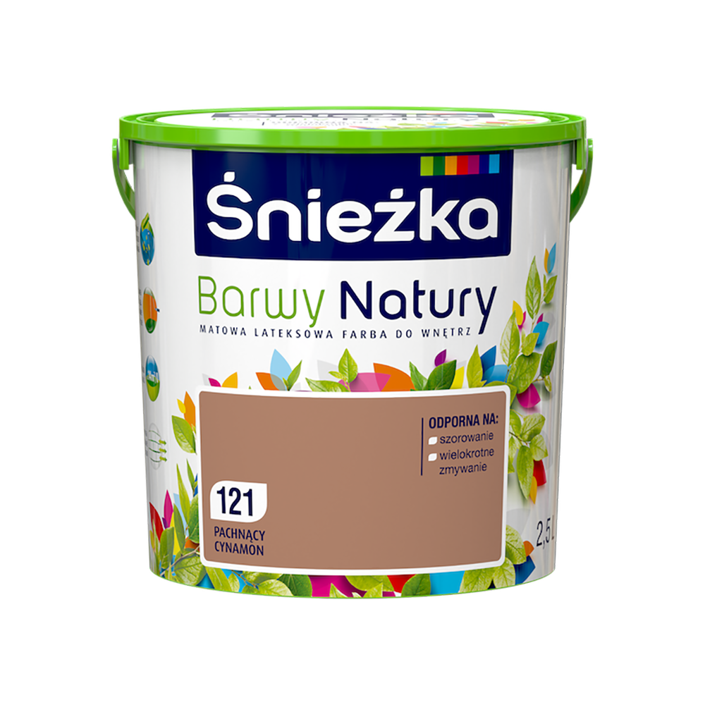Sniezka Barwy Natury – це кольорова латексна фарба високої якості, яка характеризується відмінною покривною здатністю, високою ощадливістю і стійкістю кольорів. Містить поверхнево-активні речовини, які полегшують очищення та усунення плям і забруднень, водночас підвищуючи стійкість до багаторазового миття. Забезпечують високу міцність покриття та вільну дифузію водяної пари, тобто «дихання» стін. Створюють красивий декоративний фінішний шар і при цьому абсолютно безпечні. Після нанесення фарби на стіну молекули цих речовин концентруються на поверхні створеного покриття, зменшуючи його поверхневий натяг. Завдяки цьому фарбована основа слабше притягує забруднення, а бруд має меншу можливість проникати всередину стіни. В результаті декоративне покриття є більш довговічним, а зберігати його в чистоті стає простіше.
