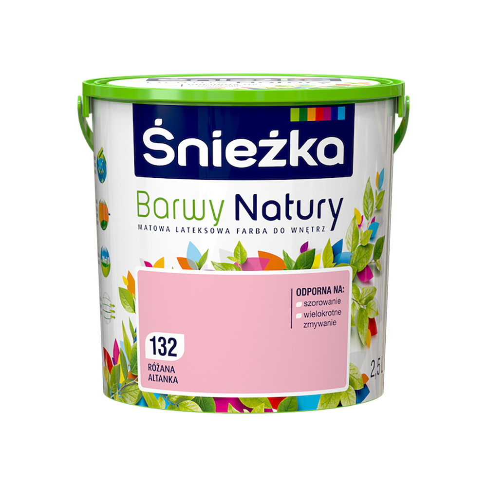 Sniezka Barwy Natury – це кольорова латексна фарба високої якості, яка характеризується відмінною покривною здатністю, високою ощадливістю і стійкістю кольорів. Містить поверхнево-активні речовини, які полегшують очищення та усунення плям і забруднень, водночас підвищуючи стійкість до багаторазового миття. Забезпечують високу міцність покриття та вільну дифузію водяної пари, тобто «дихання» стін. Створюють красивий декоративний фінішний шар і при цьому абсолютно безпечні. Після нанесення фарби на стіну молекули цих речовин концентруються на поверхні створеного покриття, зменшуючи його поверхневий натяг. Завдяки цьому фарбована основа слабше притягує забруднення, а бруд має меншу можливість проникати всередину стіни. В результаті декоративне покриття є більш довговічним, а зберігати його в чистоті стає простіше.