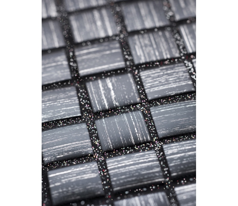 Дуже добре поєднується з металізованими плитками, скляногю і керамічною мозаїкою, люксферами.