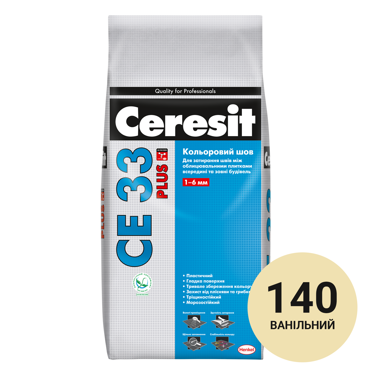 Суміш Ceresit CE 33 PLUS призначена для заповнення швів керамічних, скляних облицювальних плиток, а також облицювальних плиток зі штучного і натурального каменю, у тому числі мармуру, укладених на міцні, стійкі до деформації основи, на горизонтальних і вертикальних поверхнях усередині та зовні споруд, що експлуатуються у звичайному середовищі.