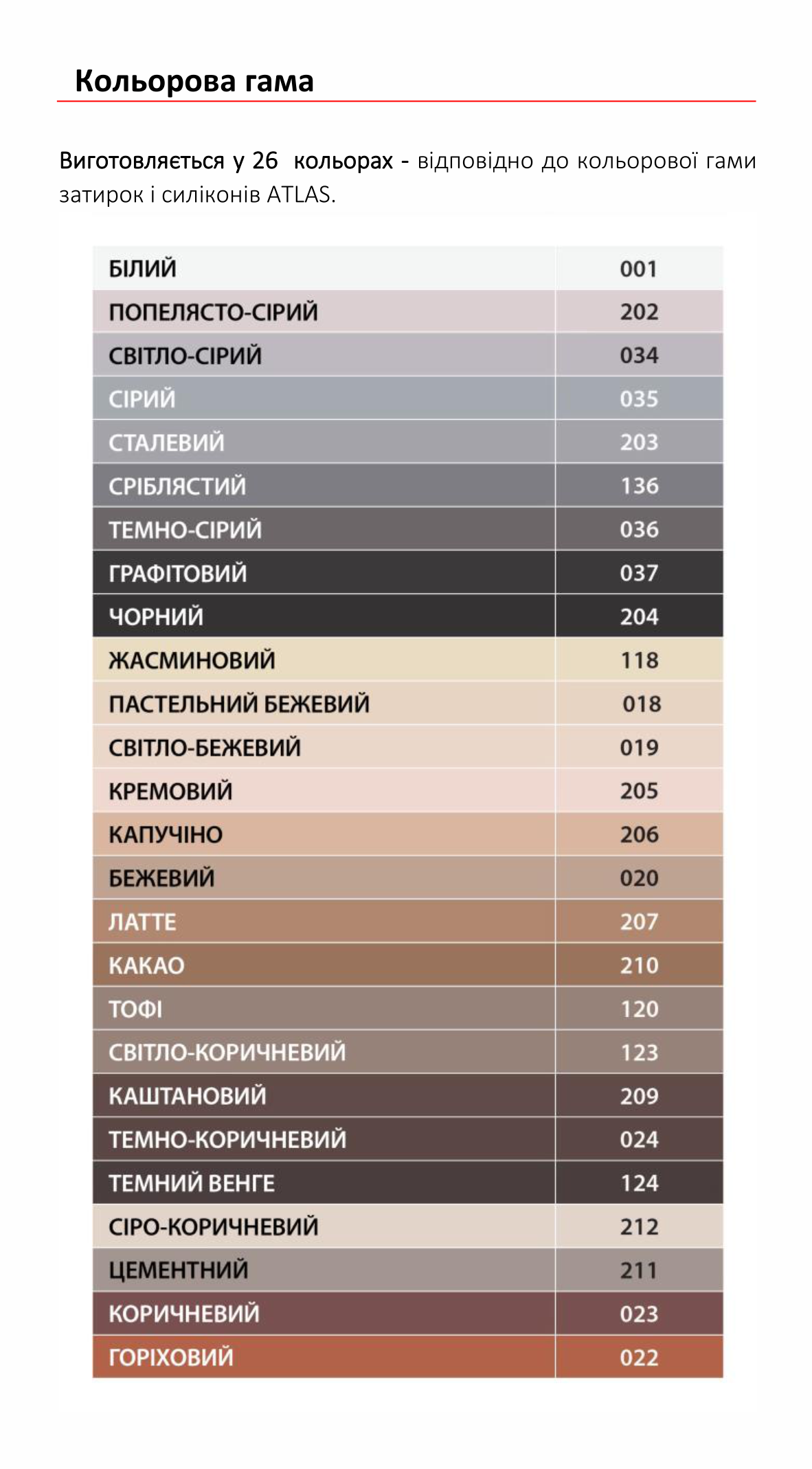 Еластична затирка ATLAS FUGA ELASTYCZNA випускається у вигляді сухої суміші високоякісних цементних сполучних речовин, спеціально підібраних дрібних агрегатів, наповнювачів, пігментів та модифікуючих добавок.