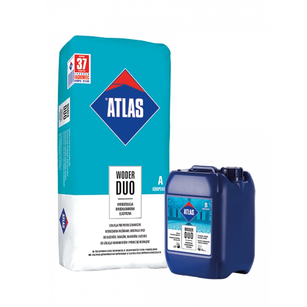ATLAS WODER DUO являє собою двокомпонентний розчин, отриманий шляхом змішування в масовому співвідношенні 3: 1 компонента A (суха сіра суміш, що містить цемент, наповнювачі та добавки) і компонента B (біла емульсія, що містить синтетичні смоли і модифікуючі добавки).