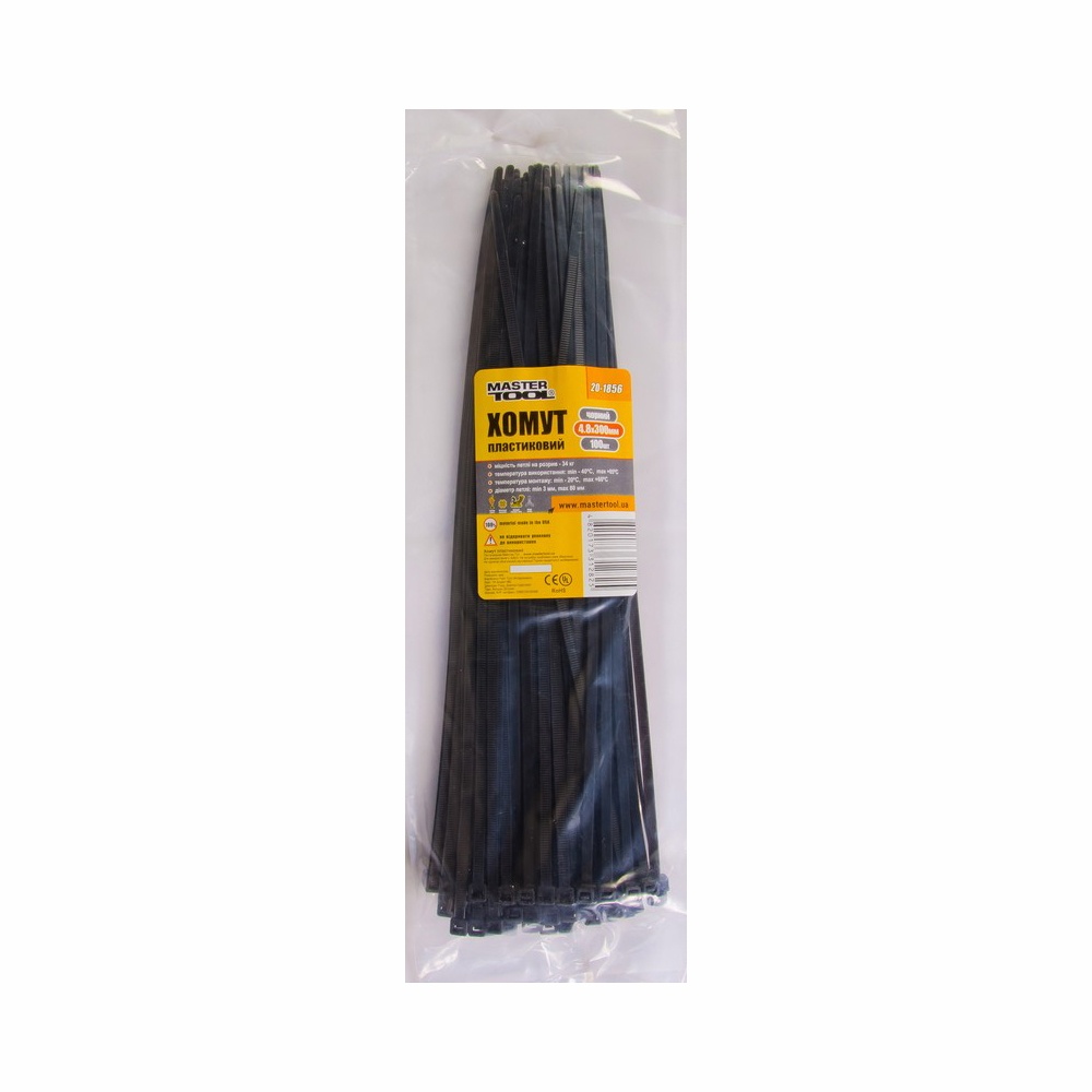 Пластиковий хомут чорного кольору. Застосовується для стяжки мережевих і/або електричних кабелів, шнурів, тросів, тощо. Підходить для кріплення декорацій, фіксація ковпаків автомобільних коліс, натяг рекламних тентів.