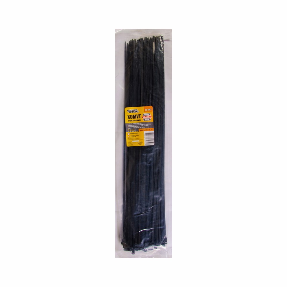Пластиковий хомут чорного кольору. Застосовується для стяжки мережевих і/або електричних кабелів, шнурів, тросів, тощо. Підходить для кріплення декорацій, фіксація ковпаків автомобільних коліс, натяг рекламних тентів.
