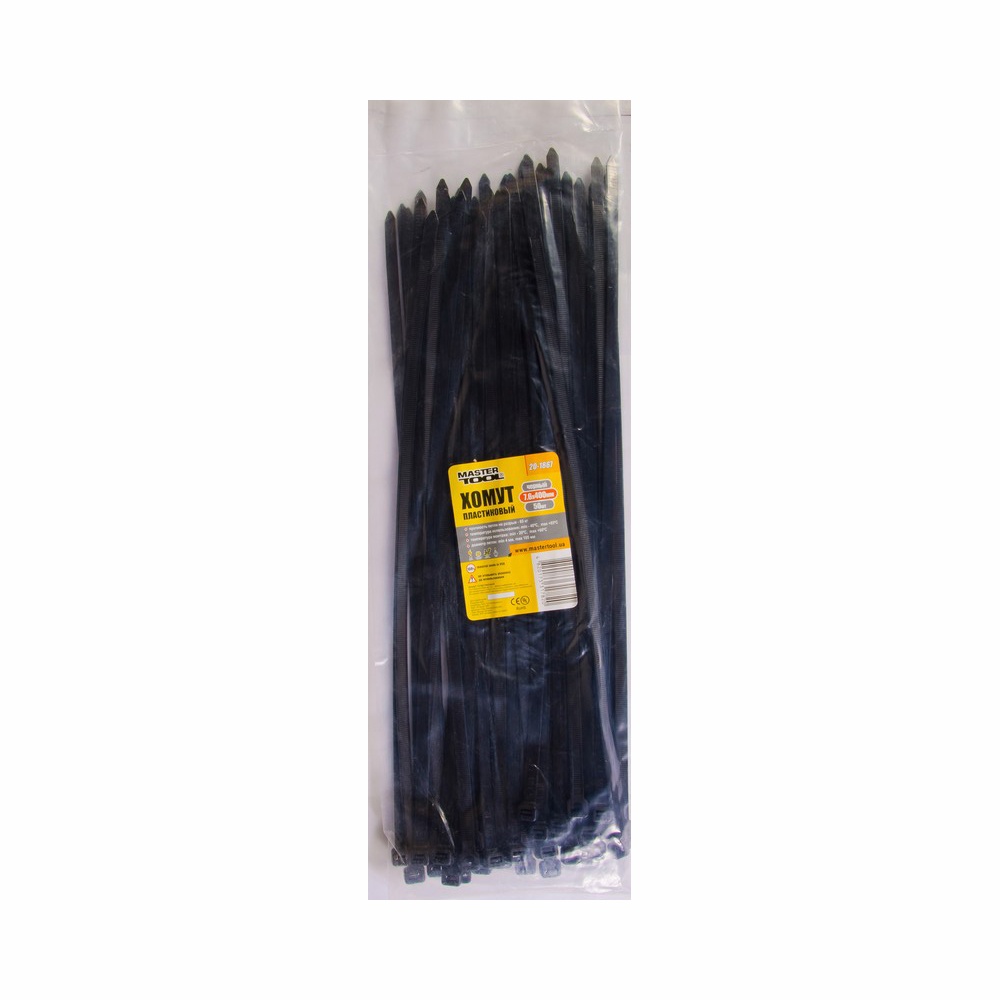 Пластиковий хомут чорного кольору. Застосовується для стяжки мережевих і/або електричних кабелів, шнурів, тросів, тощо. Підходить для кріплення декорацій, фіксація ковпаків автомобільних коліс, натяг рекламних тентів.