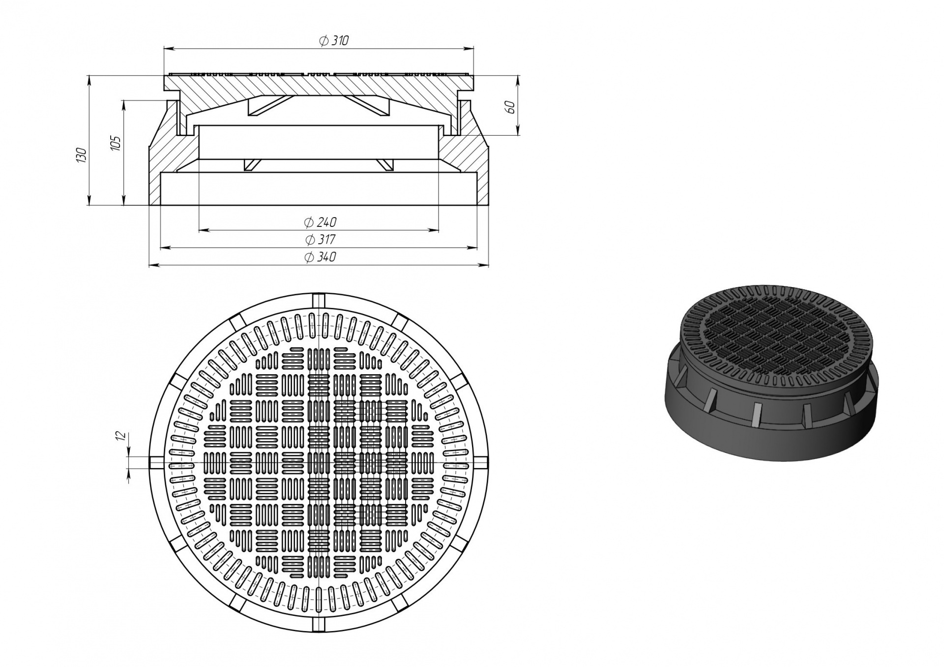 Круглі люки D315 мм встановлюють на трубу, діаметром 315мм, призначені для виконання експлуатаційних робіт в каналі з поверхні землі, а саме огляду, чищення, промивання зливних каналів.