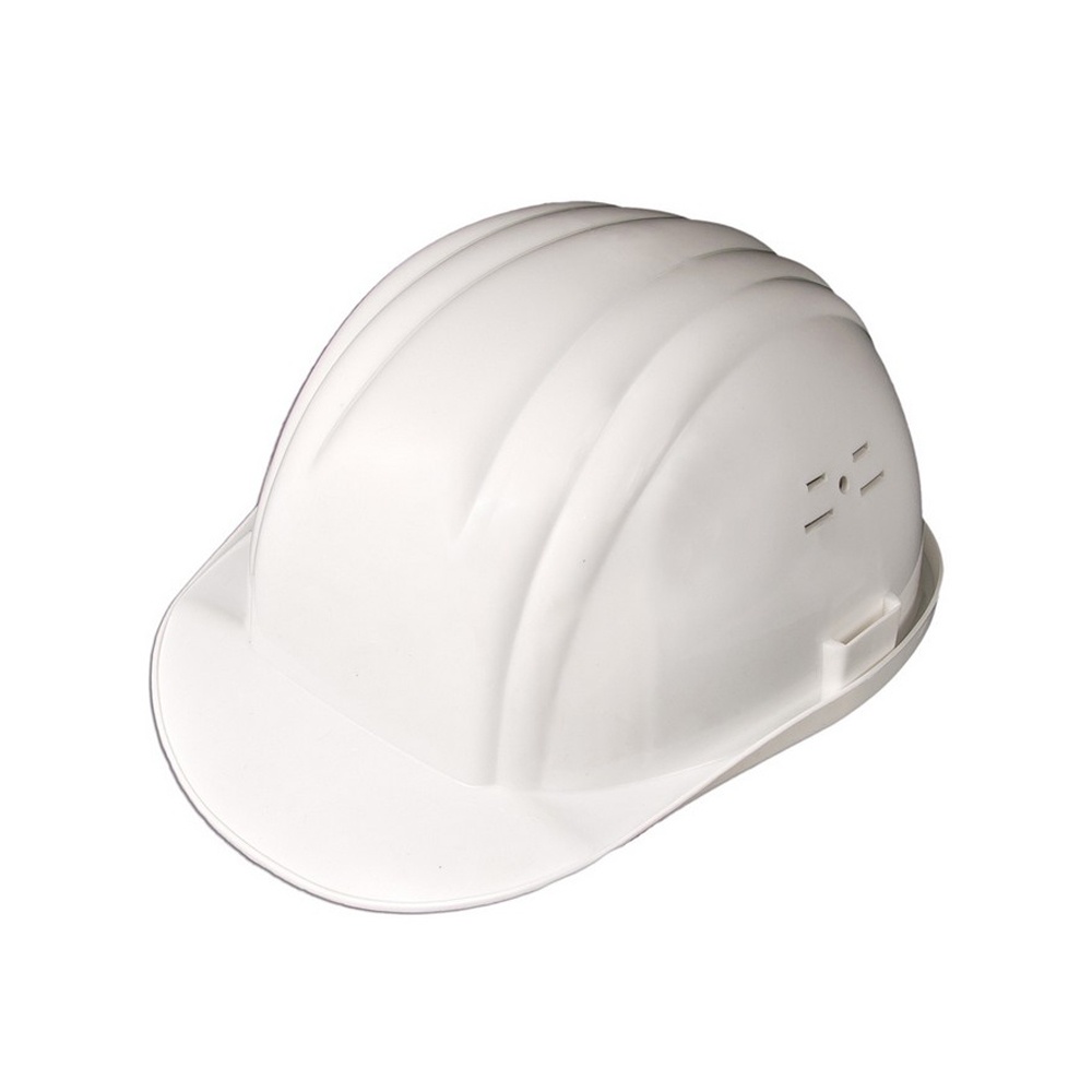 Біла каска з ударостійкого пластику.