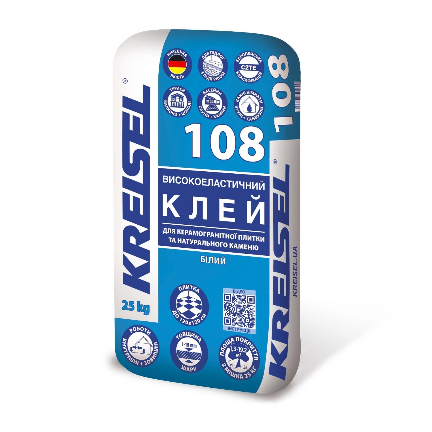 Kreisel 108 - це біла високоеластична клейова суміш призначена для облицювання плиткою з природного каменю (мармуру, вапняку, пісковика, граніту та інших світлих порід природного каменю), а також всіма іншими видами настінної та підлогової плитки, у тому числі великого формату розмірами до 100Х100.