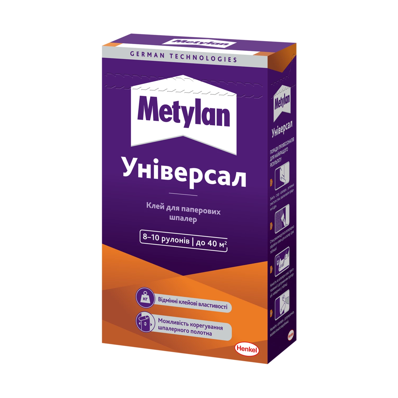 Клей Metylan Універсал для наклеювання усіх видів паперових шпалер (гладеньких, структурних, гофрованих, важких, дуплекс), а також для вінілових й інших спеціальних шпалер.