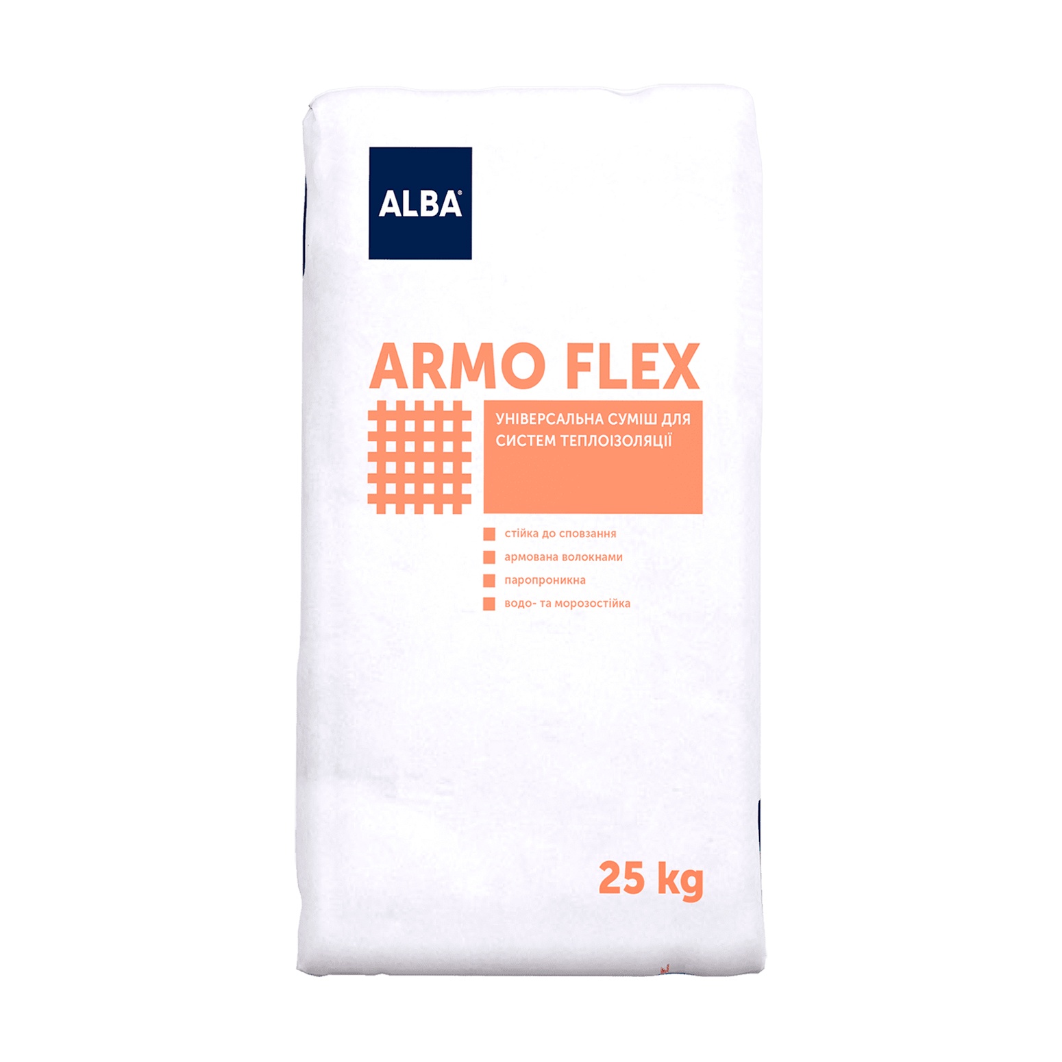 Суха суміш Альба Armo Flex призначена для приклеювання пінополістирольних та мінераловатних плит та влаштування армуючого захисного шару на їх поверхні під час утеплення фасадів будівель та споруд перед оздобленням декоративними матеріалами.