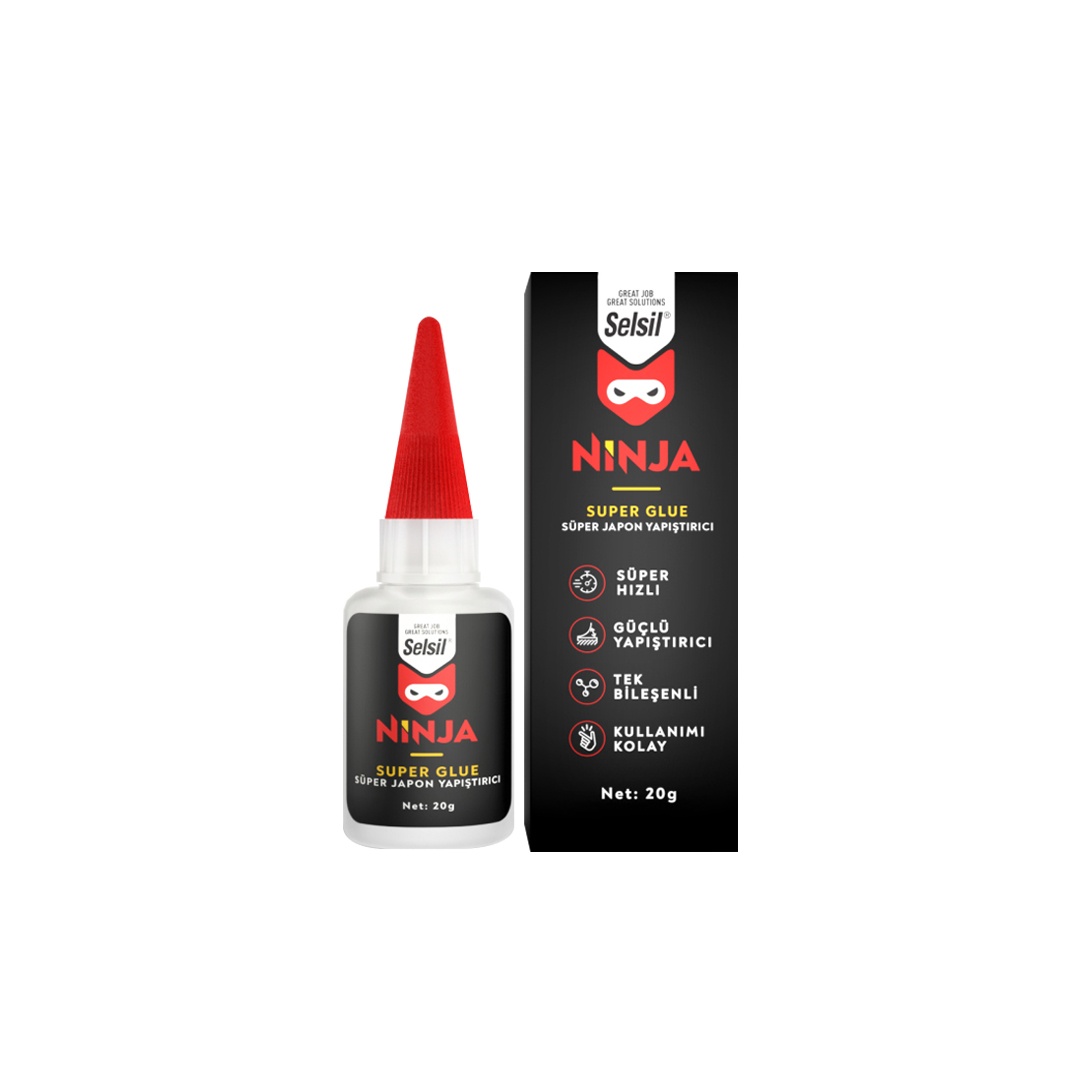 Ninja Super Glue - це клей, який забезпечує відмінну адгезію і прозорість при кімнатній температурі. Клей, що швидко схоплюється, із низькою в'язкістю, розроблений на етилціаноакрилатній основі. Ідеальний там, де потрібна надзвичайно швидка полімеризація та/або висока проникаюча здатність.