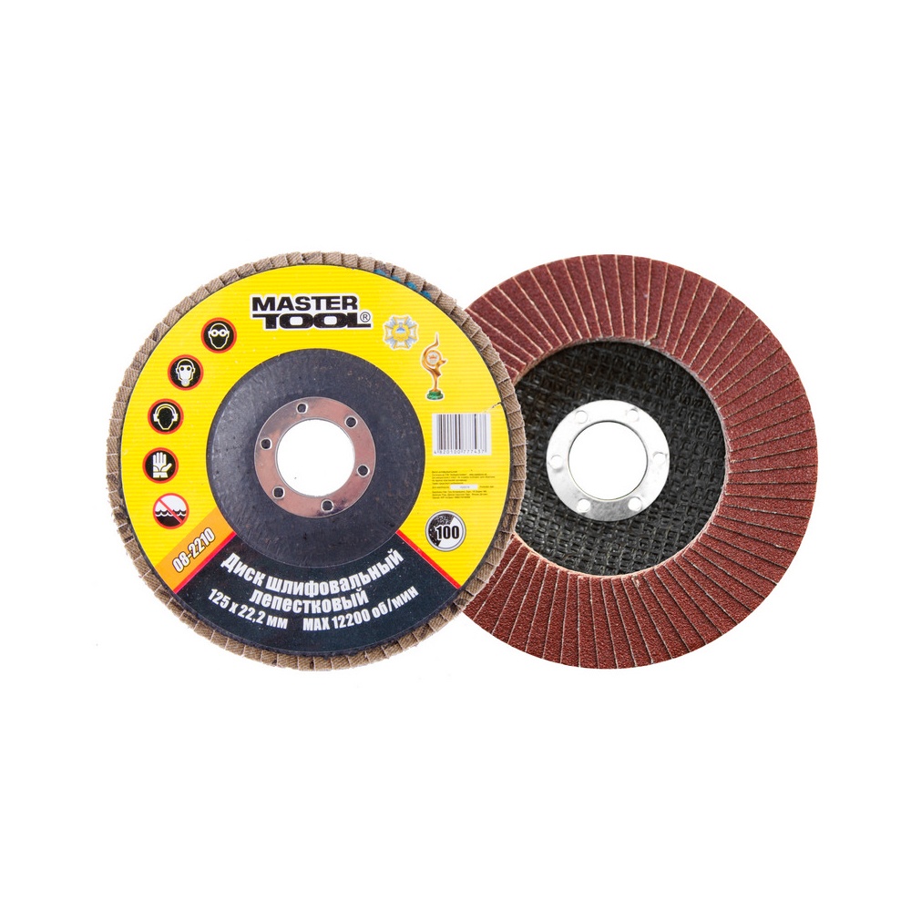 Диск шліфувальний MasterTool використовується в комплексі з кутовою шліфувальною машиною (болгаркою) для шліфування та полірування виробів з різних металів, дерева, бетону, а також для зняття іржі, обробки крайок і швів, зачищення поверхонь від старих лакофарбових покриттів. Застосування такого диску дозволяє забезпечити відсутність припікань, ям, врізів і інших дефектів. Конструктивно виріб представляє собою диск круглої форми з віяловим розташуванням сегментів (пелюсток). Їх робоча поверхня має абразивний шар з рівномірною зернистістю. Пелюсткова конфігурація робочої частини кола знижує його вібрацію в процесі роботи, забезпечує плавний хід і забезпечує своєчасне охолодження в зоні проведення шліфувальних робіт.