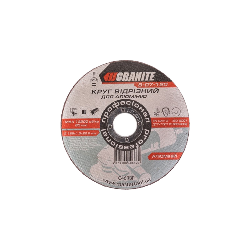 Круг відрізний MasterTool Granite відрізняється високою якістю, надійністю та ефективністю. Армований бакелітовим ущільнювачем з двошарового скловолокна і виконаний з матеріалу особливої міцності - електрокорунду, що перешкоджає його руйнуванню при роботах на високіх швидкостях. Використовується при різанні виробів з кольорових металів та їх сплавів. Круг не містить шкідливих елементів, не перегрівається і не деформує метал в місці різу.