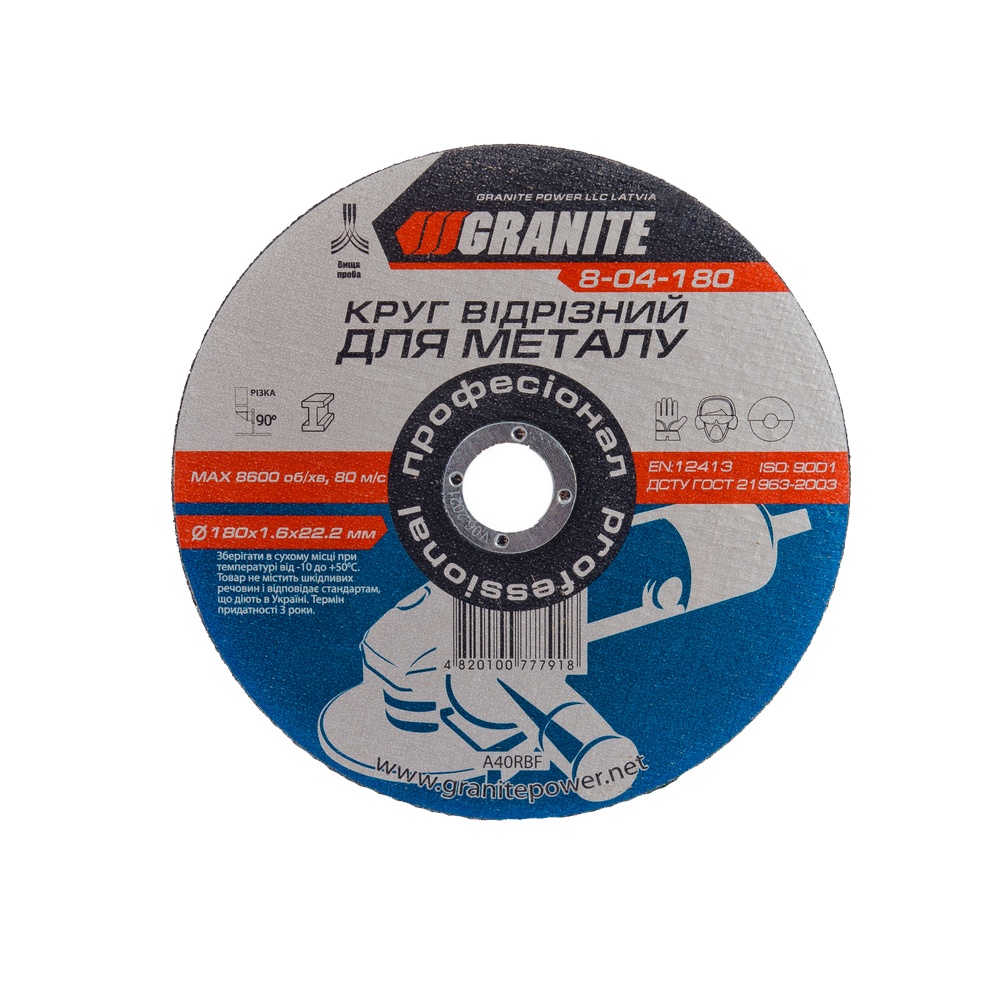 Круг відрізний MasterTool Granite відрізняється високою якістю, надійністю та ефективністю. Армований бакелітовим ущільнювачем з двошарового скловолокна і виконаний з матеріалу особливої міцності - електрокорунду, що перешкоджає його руйнуванню при роботах на високіх швидкостях. Використовується при різанні виробів з конструкційної та інструментальної сталі, нержавіючої та жаростійкої сталі, а також з кольорових металів та їх сплавів. Круг не містить шкідливих елементів, не перегрівається і не деформує метал в місці різу.