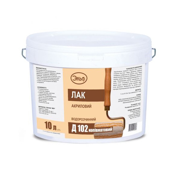 Elf Decor Д 101 - це водорозчинний лак, що застосовується для декоративного оздоблення та захисту поверхонь з дерева, деревних матеріалів, а також забарвлених поверхонь, декоративних штукатурок, гіпсу, шпалер, картону. Призначений для внутрішніх робіт. Тонується в будь-який відтінок універсальними барвниками і за комп'ютерною системою кольорування.