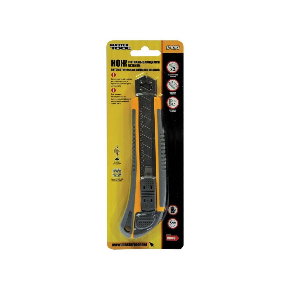 Ніж MasterTool призначений для використання під час монтажних та ремонтних робіт. Має корпус з ударостійкого ABS пластику з TPR покриттям. Лезо ножа виготовлено з високоякісної сталі з лазерним заточуванням, що гарантує відмінну гостроту і довговічність ріжучого полотна. При необхідності лезо легко і швидко замінюється на нове.
