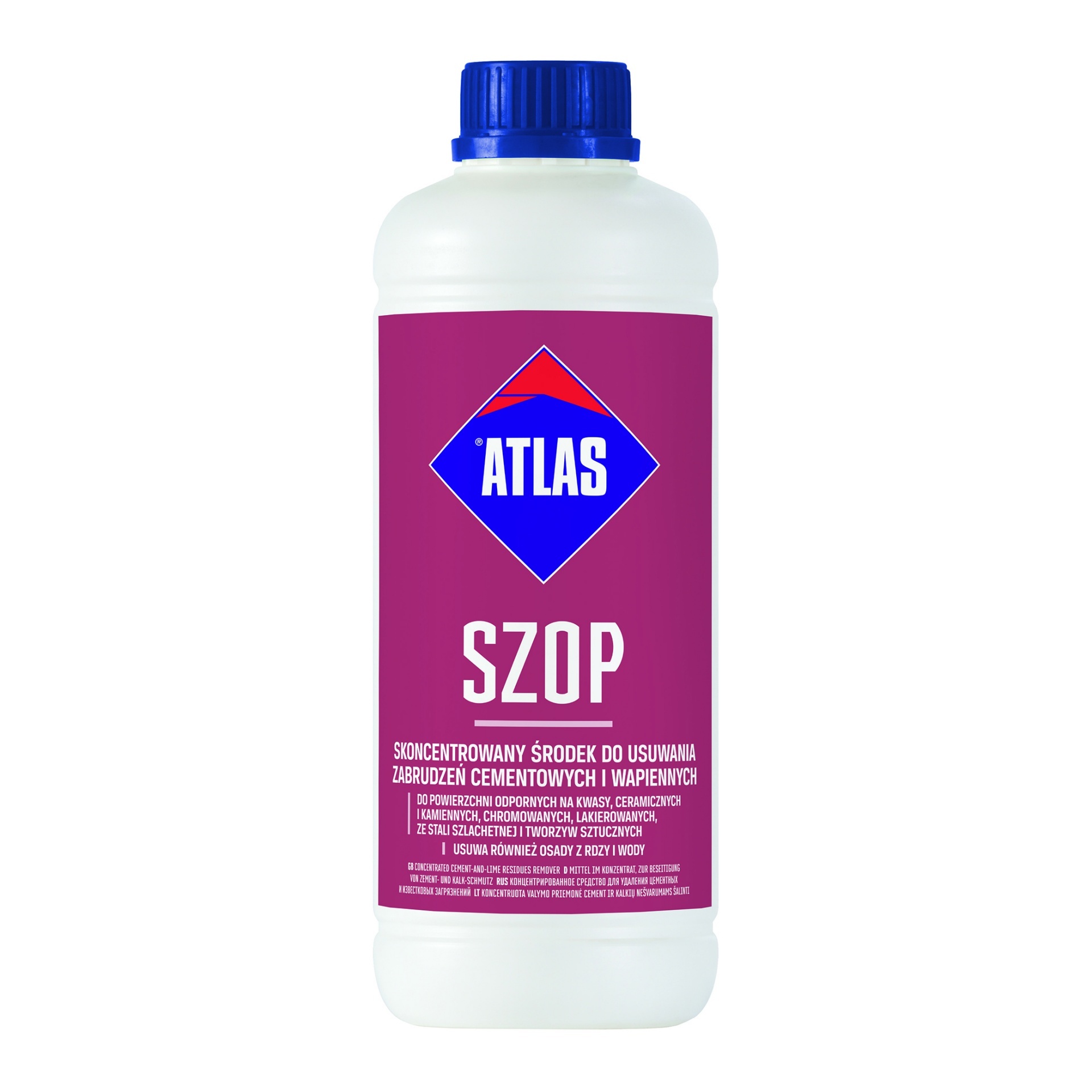 Atlas Szop – це концентрований засіб, призначений для усунення залишків цементу, вапна та гіпсу. Змиває побутові забруднення: бруд, осад та плями, що утворилися з мінералів, іржі тощо, які містяться у воді.