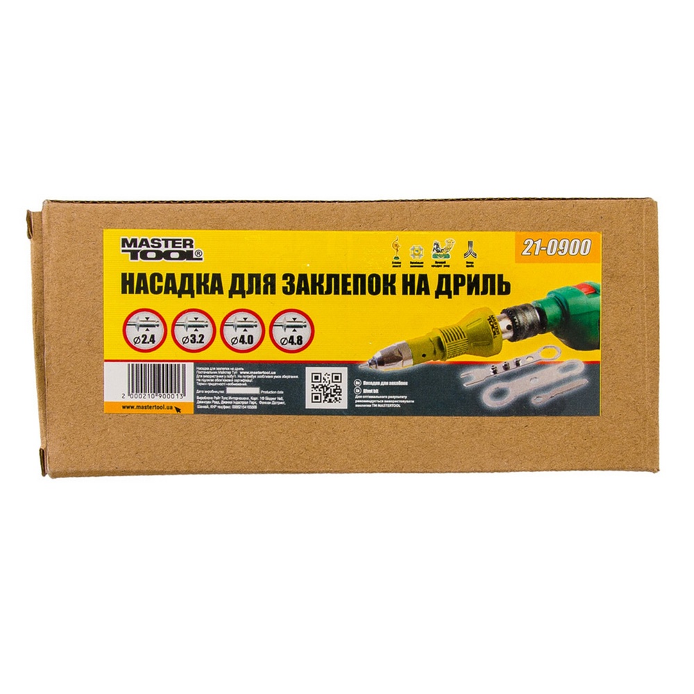 Ця насадка для заклепок на дриль дозволяє значно підвищити продуктивність роботи, забезпечуючи швидке і надійне кріплення заклепок різного діаметра.
