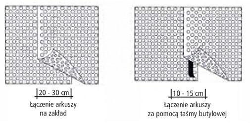 - Запас геотекстилю розміром 5 см над мембраною запобігає проникненню наповнення в систему і полегшує закладку при горизонтальному і вертикальному використанні.