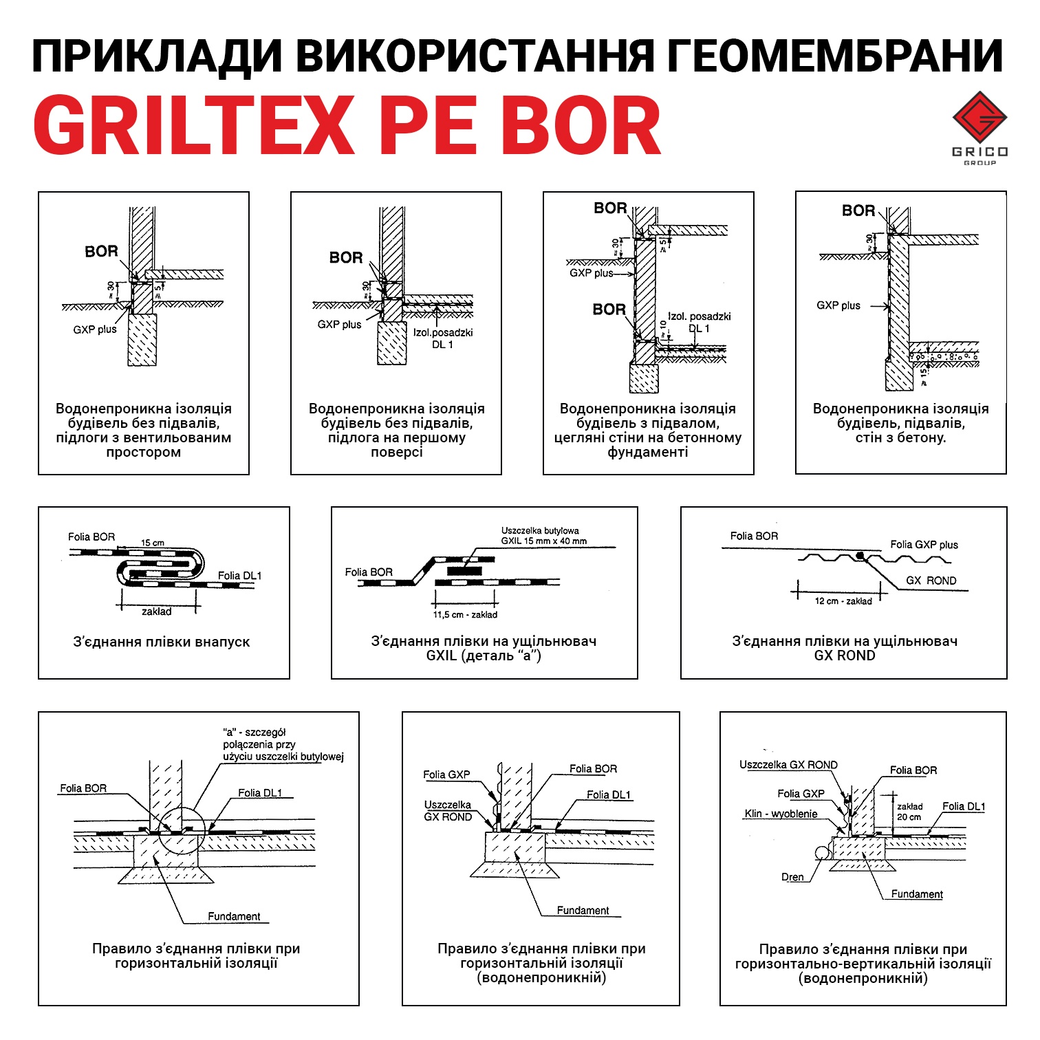 Стрічка ізоляційна PE BOR - плівка, що запобігає просочуванню води через несучі стіни. Чорна поліетиленова плівка міцна та не піддається розпаду. А зовнішній вигляд "вафлі" покращує прилягання та мінімізує розрив. З’єднання внапуск - мінімум 20 см - дозволяє легко зберегти ізоляцію стін.